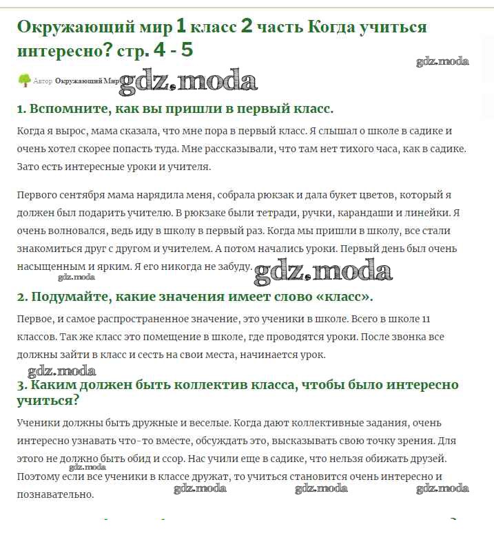ОТВЕТ на задание № 4-5 Учебник по Окружающему миру 1 класс Плешаков Школа России