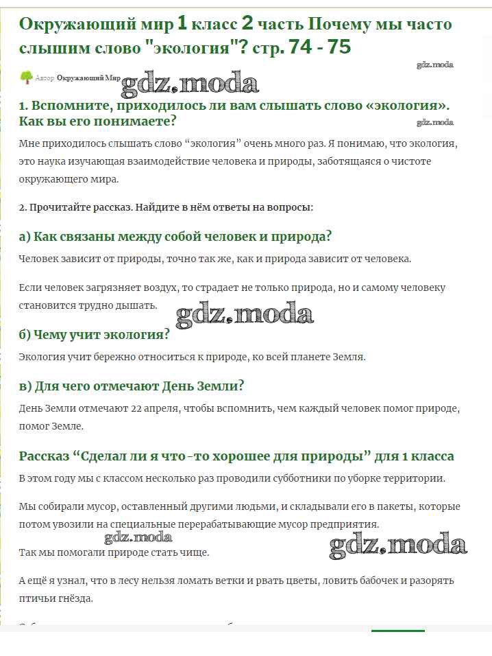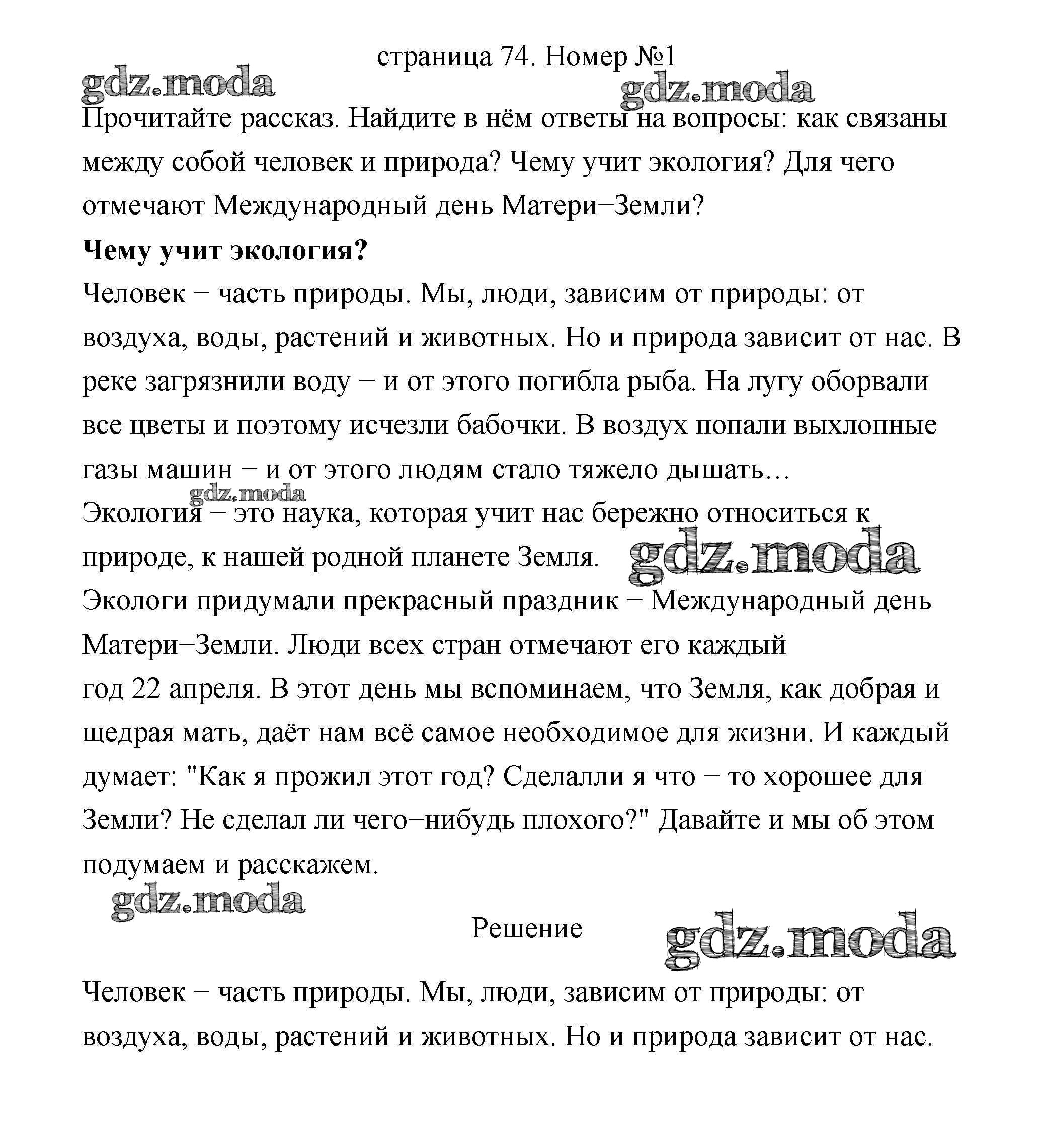 ОТВЕТ на задание № 74-75 Учебник по Окружающему миру 1 класс Плешаков Школа России