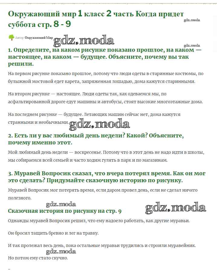 ОТВЕТ на задание № 8-9 Учебник по Окружающему миру 1 класс Плешаков Школа России