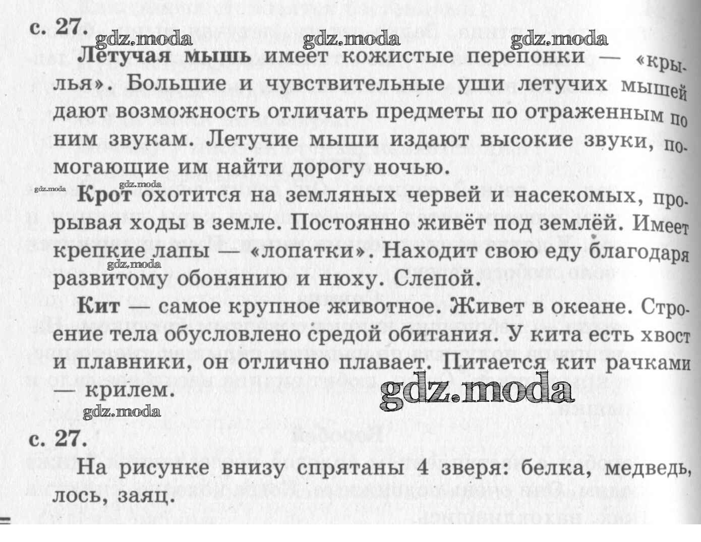 ГДЗ решение к заданию № 27 Окружающий мир 1 класс Мир вокруг нас Плешаков А.А. Просвещение 2007 ФГОС бесплатно на гдз.мода!