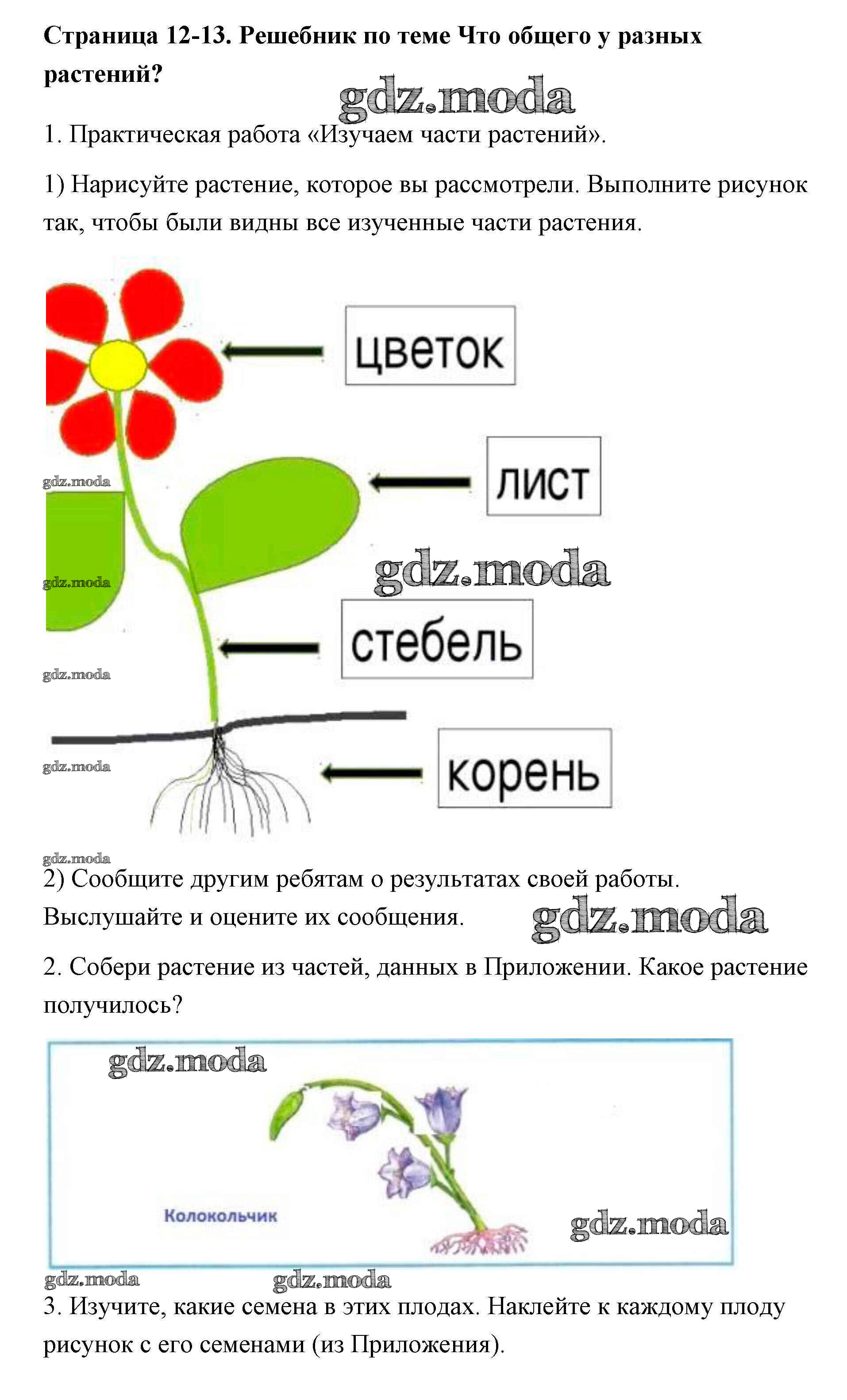 ОТВЕТ на задание № 12-13 Рабочая тетрадь по Окружающему миру 1 класс Плешаков Школа России