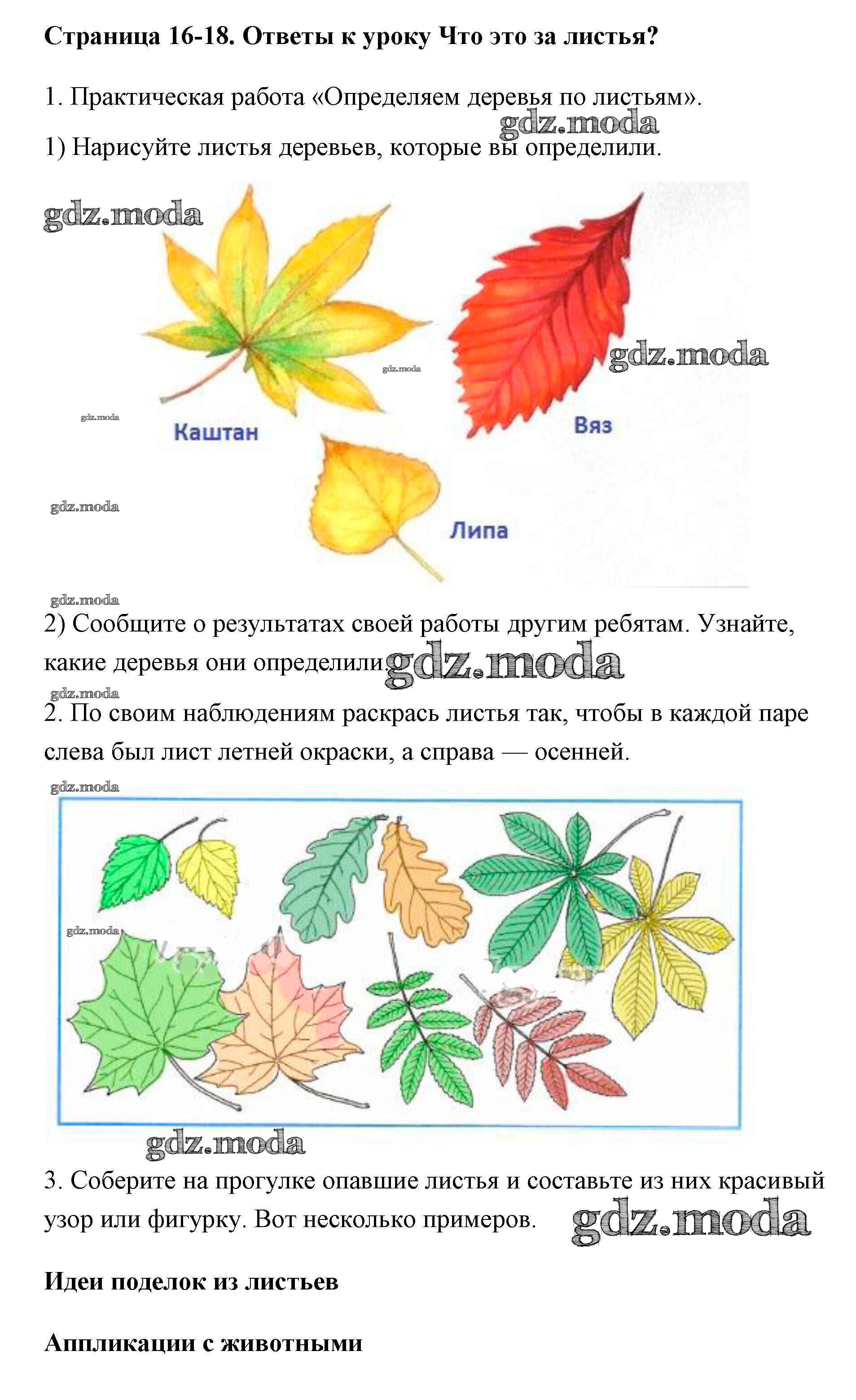 ОТВЕТ на задание № 16-18 Рабочая тетрадь по Окружающему миру 1 класс Плешаков Школа России