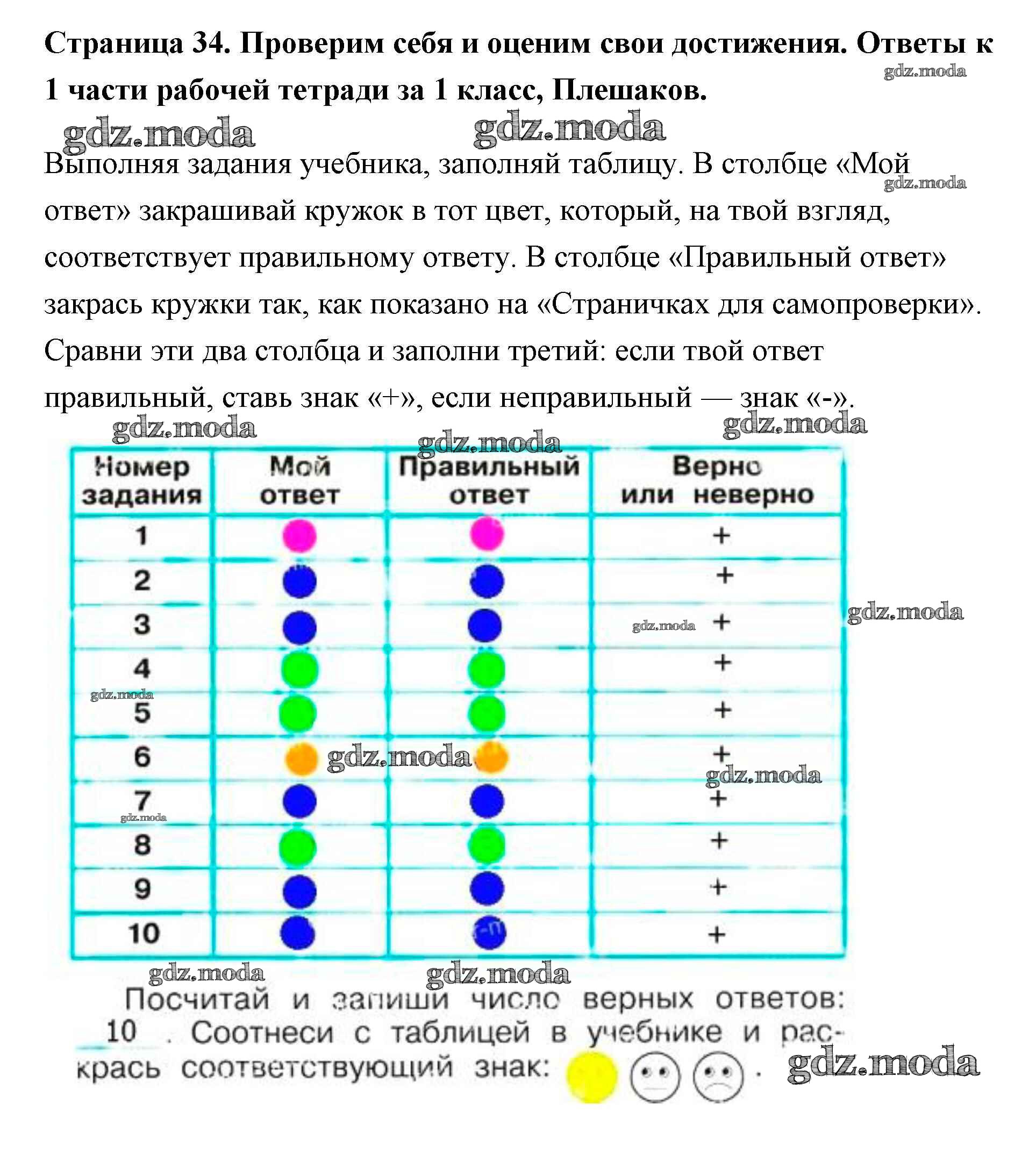 ОТВЕТ на задание № 34 Рабочая тетрадь по Окружающему миру 1 класс Плешаков Школа России