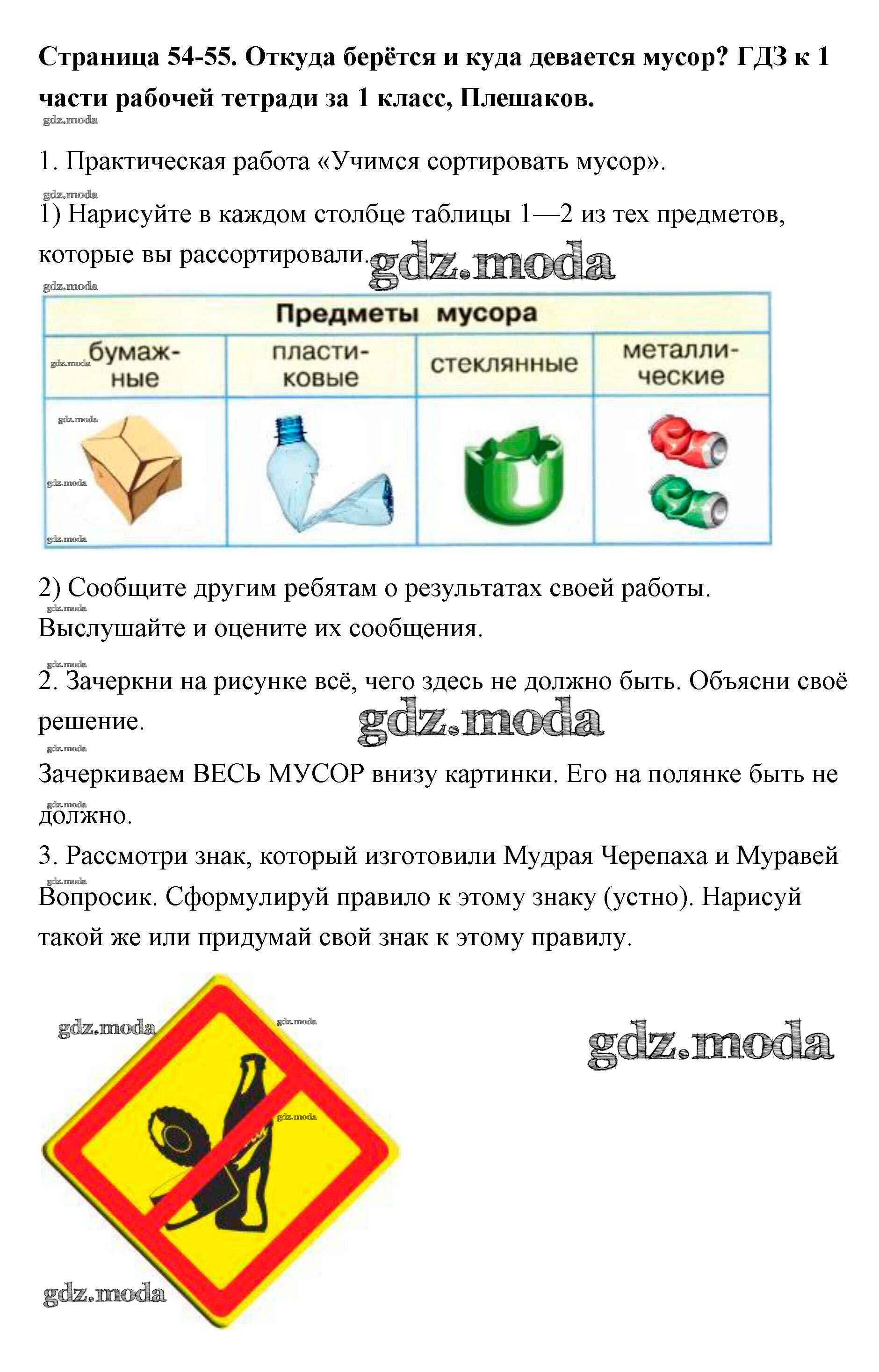 ОТВЕТ на задание № 54-55 Рабочая тетрадь по Окружающему миру 1 класс Плешаков Школа России