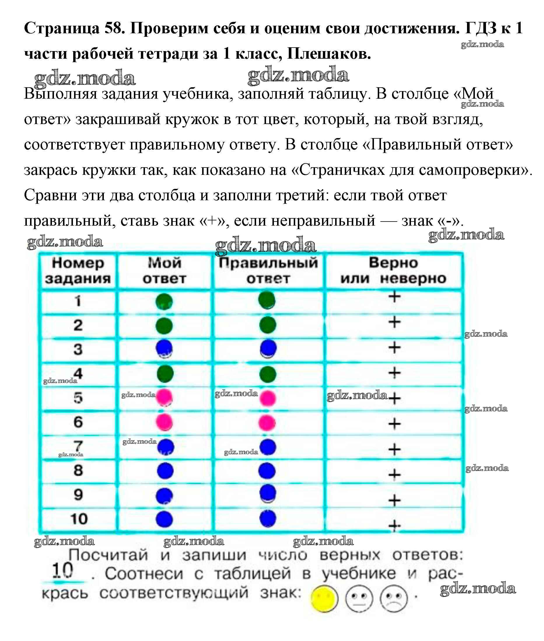 ОТВЕТ на задание № 58 Рабочая тетрадь по Окружающему миру 1 класс Плешаков Школа России