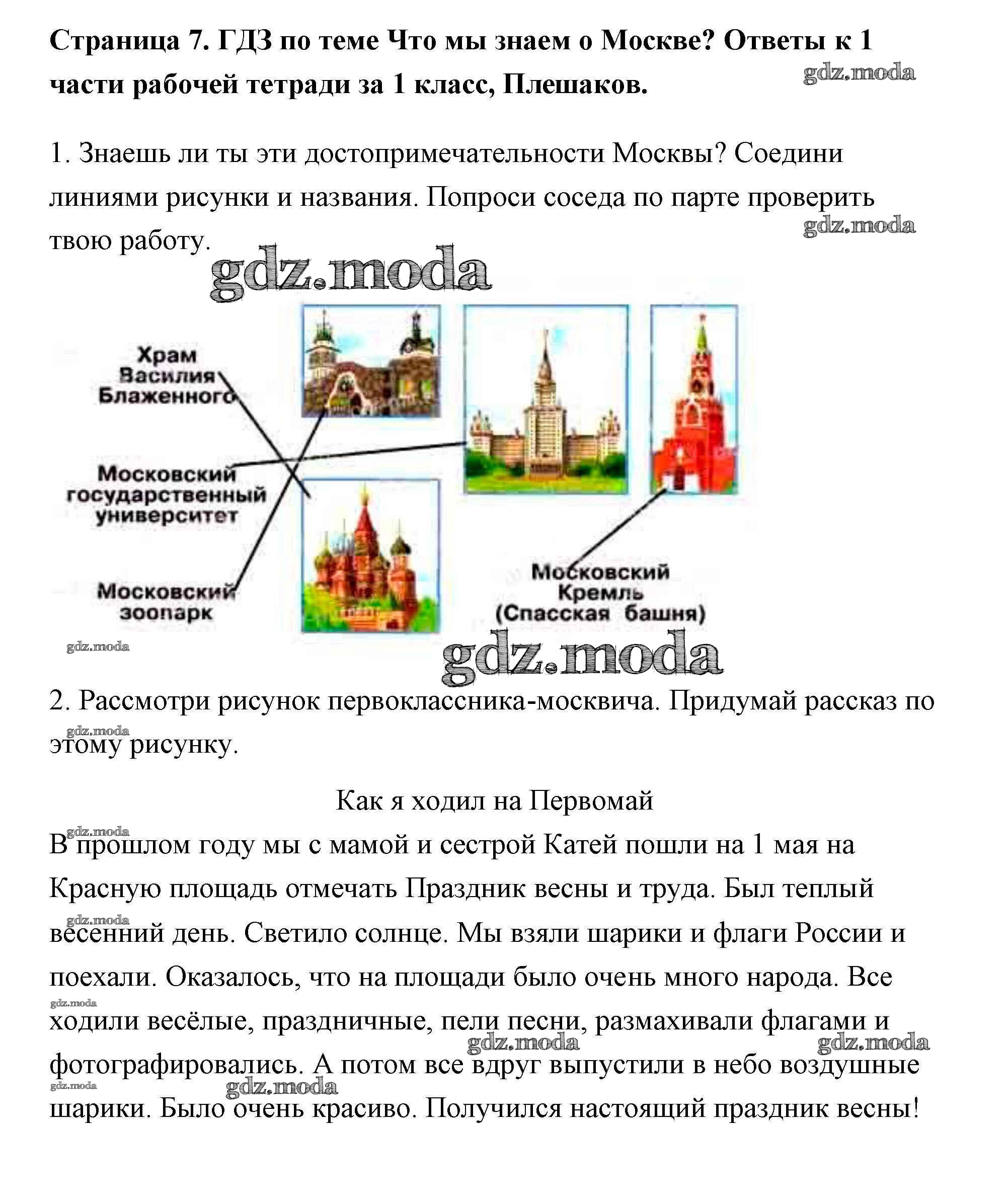 ОТВЕТ на задание № 7 Рабочая тетрадь по Окружающему миру 1 класс Плешаков Школа России