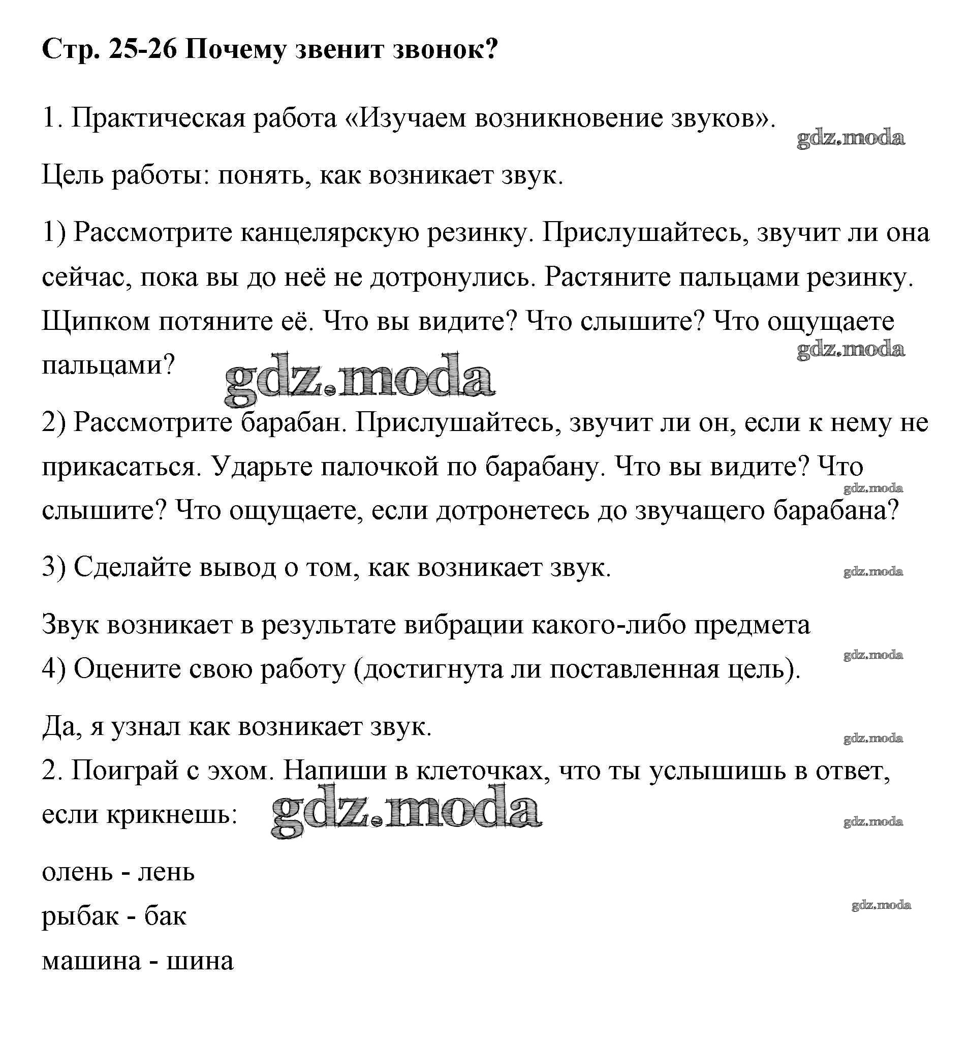ОТВЕТ на задание № 25-26 Рабочая тетрадь по Окружающему миру 1 класс Плешаков Школа России