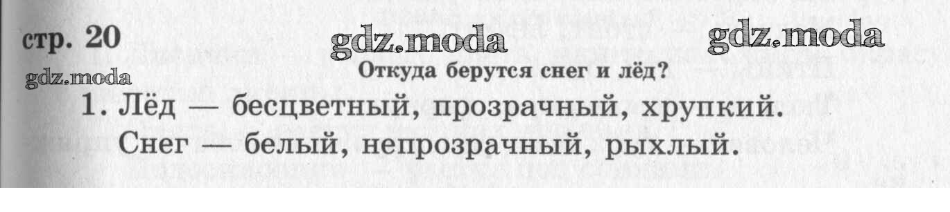 ГДЗ решение к заданию № 20 Окружающий мир 1 класс Мир вокруг нас рабочая тетрадь Плешаков А.А. Просвещение 2009 Часть 1, Часть 2 ФГОС бесплатно на гдз.мода!