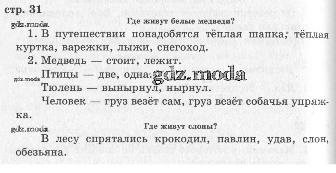ГДЗ решение к заданию № 31 Окружающий мир 1 класс Мир вокруг нас рабочая тетрадь Плешаков А.А. Просвещение 2009 Часть 1, Часть 2 ФГОС бесплатно на гдз.мода!