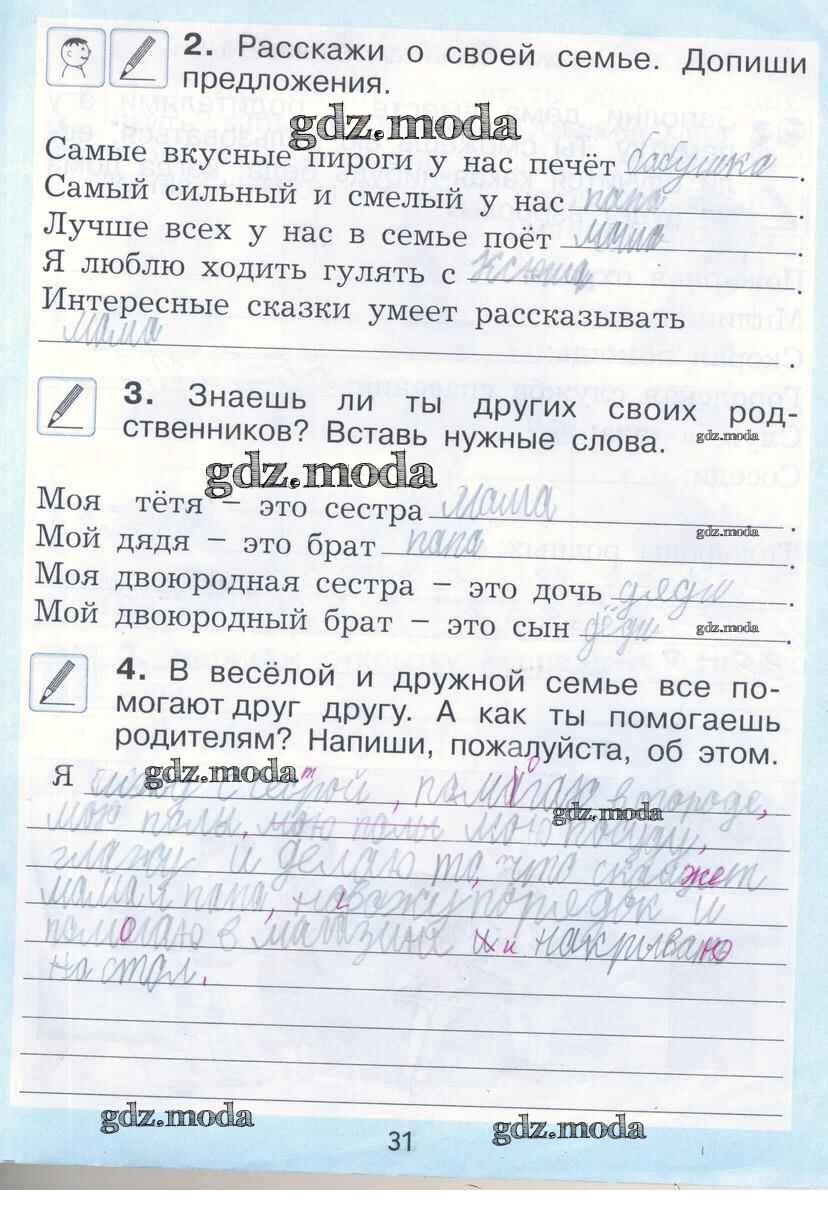 ОТВЕТ на задание № 31 Рабочая тетрадь по Окружающему миру 1 класс Вахрушев Школа 2100