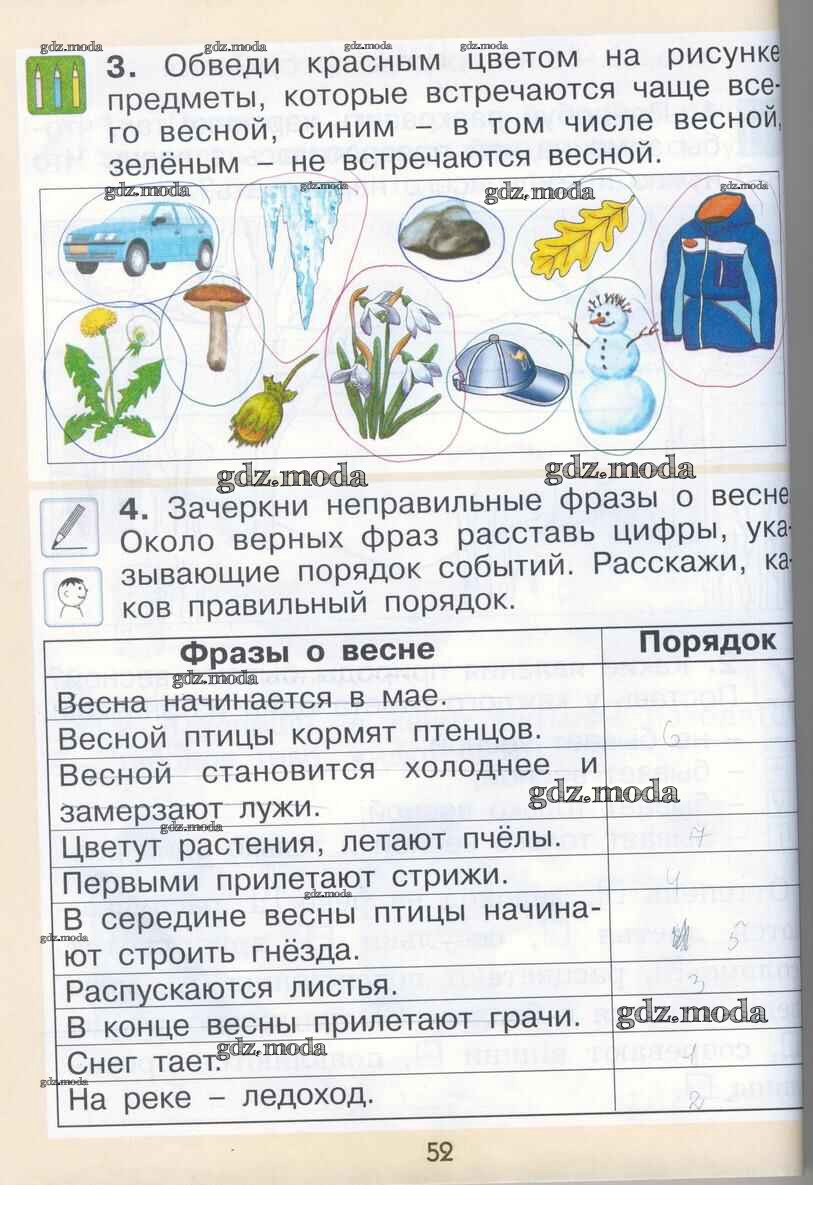 ГДЗ решение к заданию № 52 Окружающий мир 1 класс рабочая тетрадь Вахрушев А.А. Баласс 2015 ФГОС бесплатно на гдз.мода!