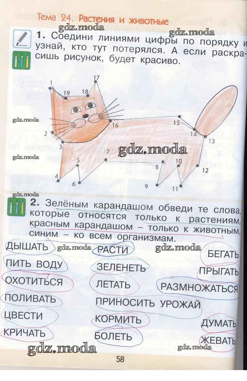 ГДЗ решение к заданию № 58 Окружающий мир 1 класс рабочая тетрадь Вахрушев А.А. Баласс 2015 ФГОС бесплатно на гдз.мода!