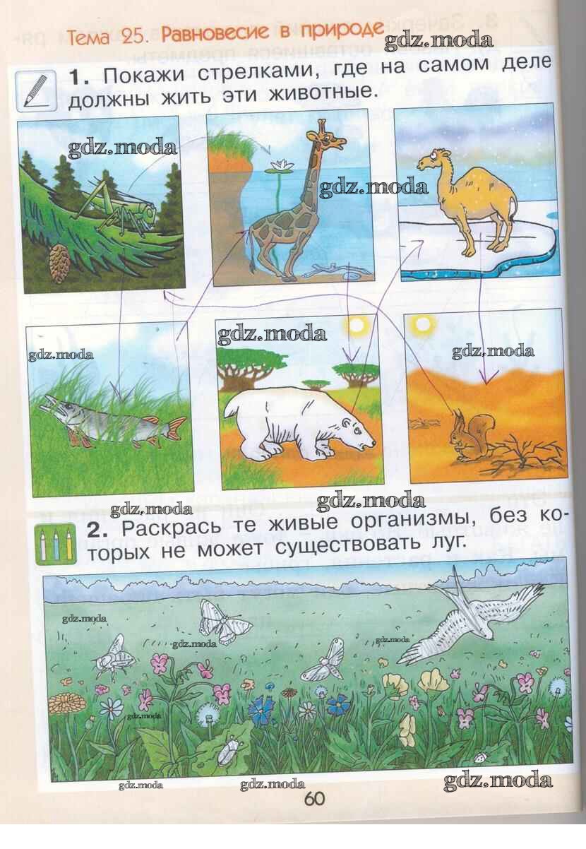 ГДЗ решение к заданию № 60 Окружающий мир 1 класс рабочая тетрадь Вахрушев А.А. Баласс 2015 ФГОС бесплатно на гдз.мода!