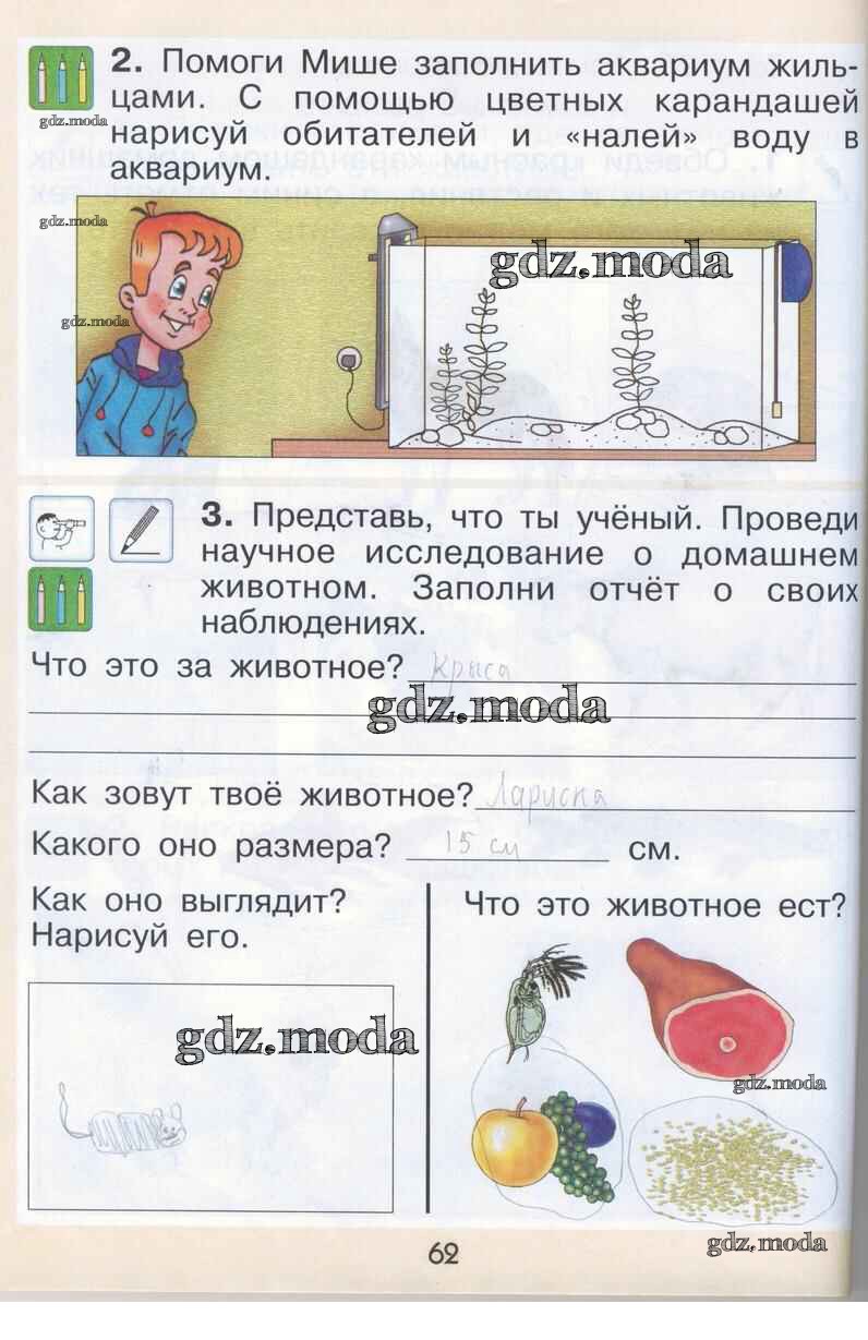 ГДЗ решение к заданию № 62 Окружающий мир 1 класс рабочая тетрадь Вахрушев А.А. Баласс 2015 ФГОС бесплатно на гдз.мода!