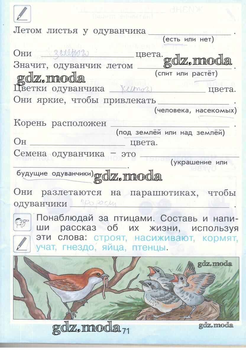 ГДЗ решение к заданию № 71 Окружающий мир 1 класс рабочая тетрадь Вахрушев А.А. Баласс 2015 ФГОС бесплатно на гдз.мода!