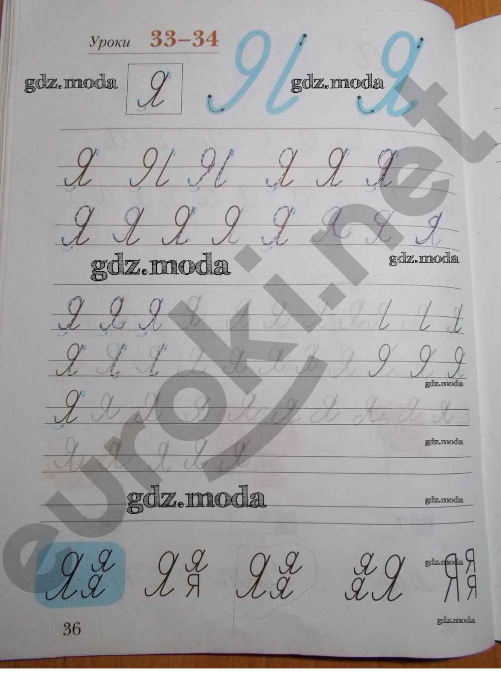 ГДЗ решение к заданию № 36 Русский язык 1 класс рабочая тетрадь Прописи Безруких М.М. Вентана-граф 2019 ФГОС бесплатно на гдз.мода!