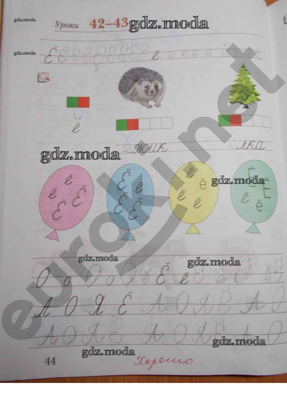ГДЗ решение к заданию № 44 Русский язык 1 класс рабочая тетрадь Прописи Безруких М.М. Вентана-граф 2019 ФГОС бесплатно на гдз.мода!