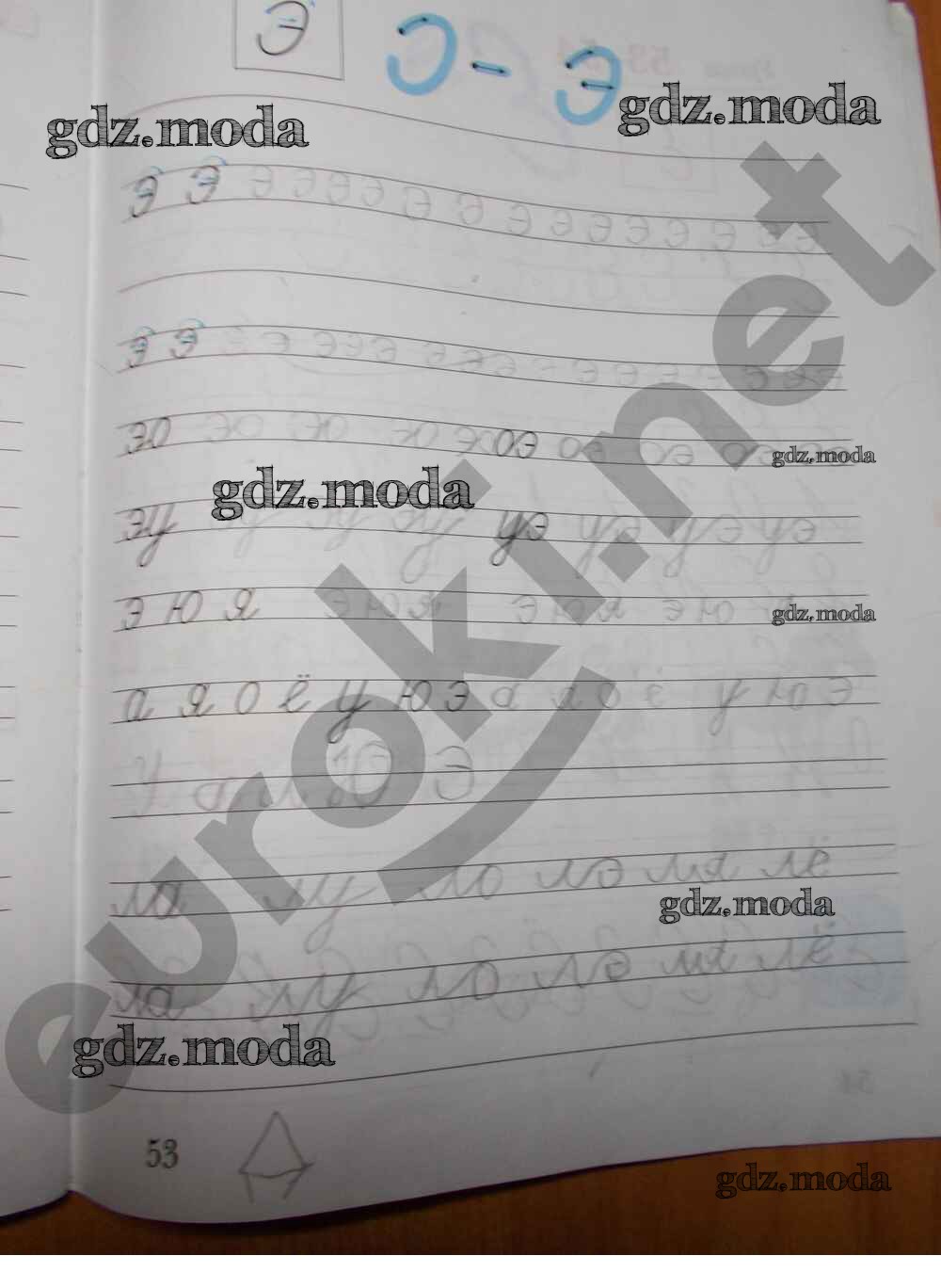 ГДЗ решение к заданию № 53 Русский язык 1 класс рабочая тетрадь Прописи Безруких М.М. Вентана-граф 2019 ФГОС бесплатно на гдз.мода!