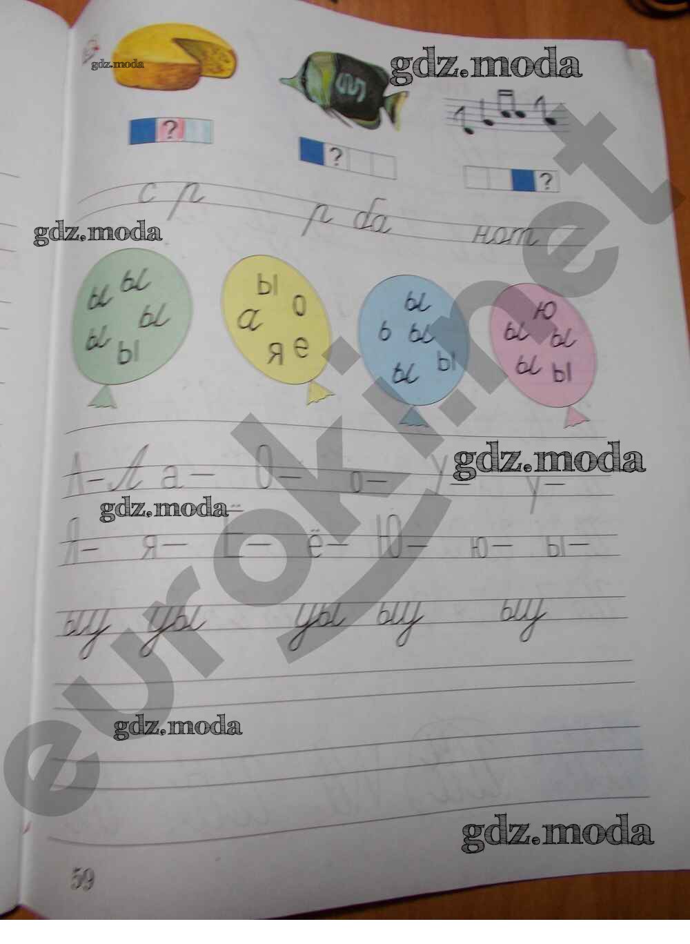 ГДЗ решение к заданию № 59 Русский язык 1 класс рабочая тетрадь Прописи Безруких М.М. Вентана-граф 2019 ФГОС бесплатно на гдз.мода!