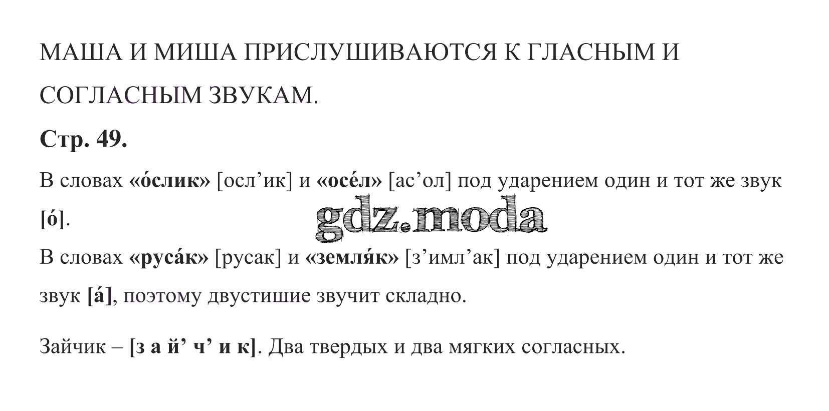 ОТВЕТ на задание № стр. 49 Учебник по Русскому языку 1 класс Чуракова Перспективная начальная школа