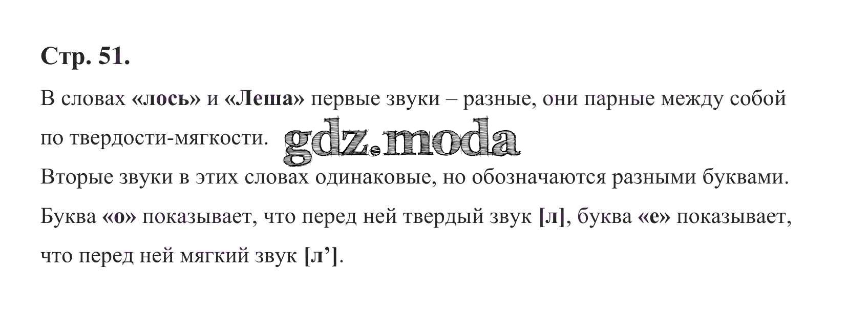 ОТВЕТ на задание № стр. 51 Учебник по Русскому языку 1 класс Чуракова Перспективная начальная школа