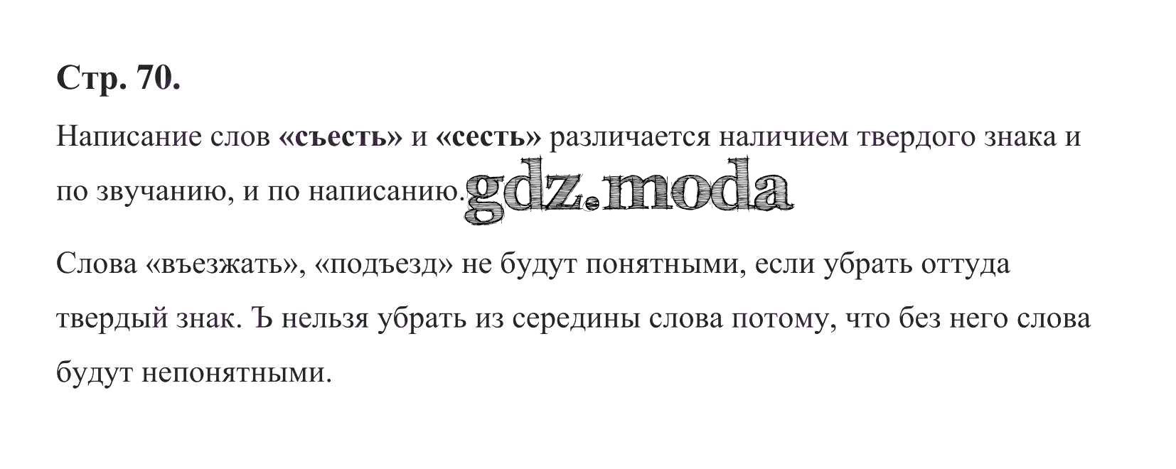 ОТВЕТ на задание № стр. 70 Учебник по Русскому языку 1 класс Чуракова Перспективная начальная школа