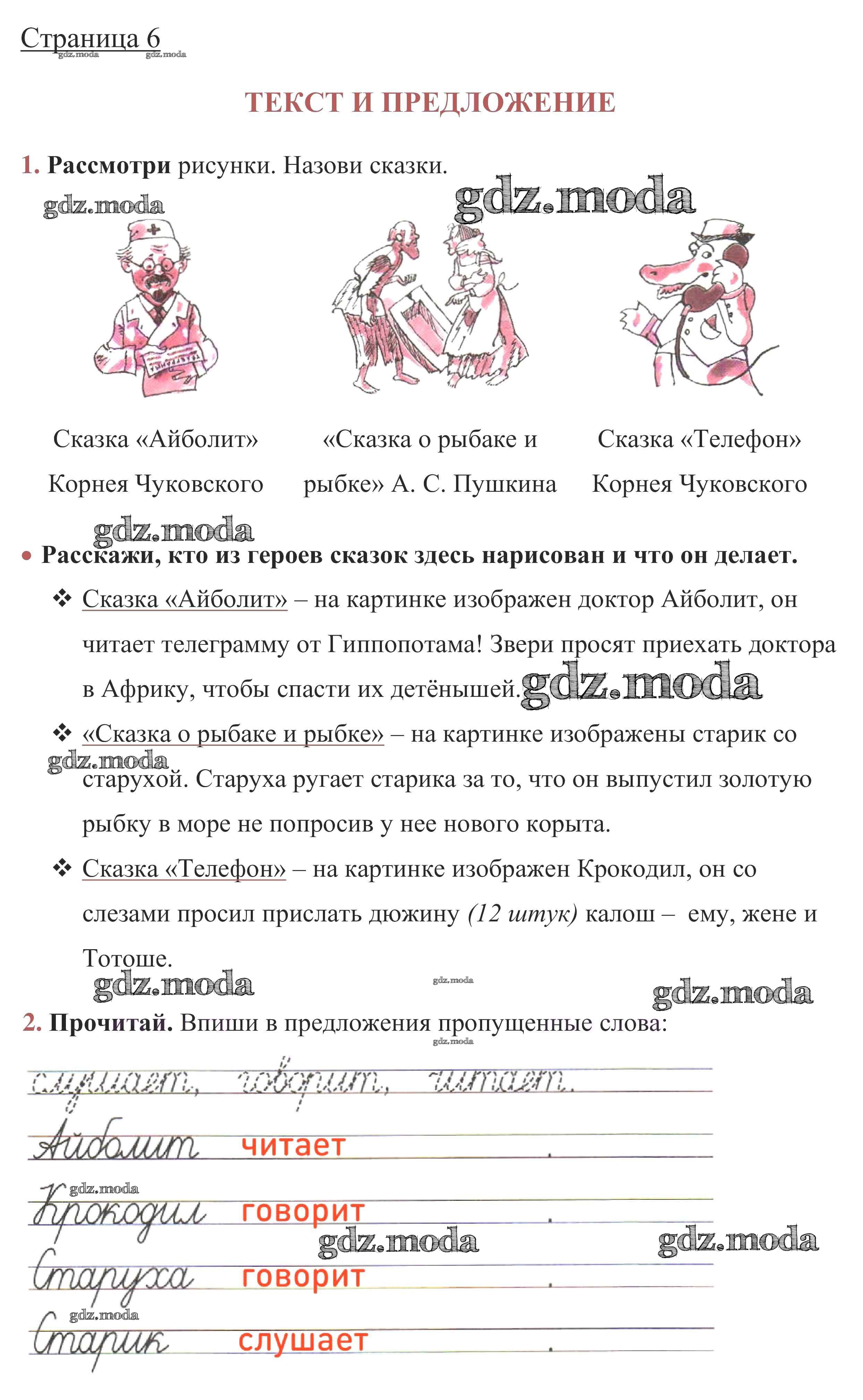 ОТВЕТ на задание № стр. 6 Рабочая тетрадь по Русскому языку 1 класс Канакина Школа России