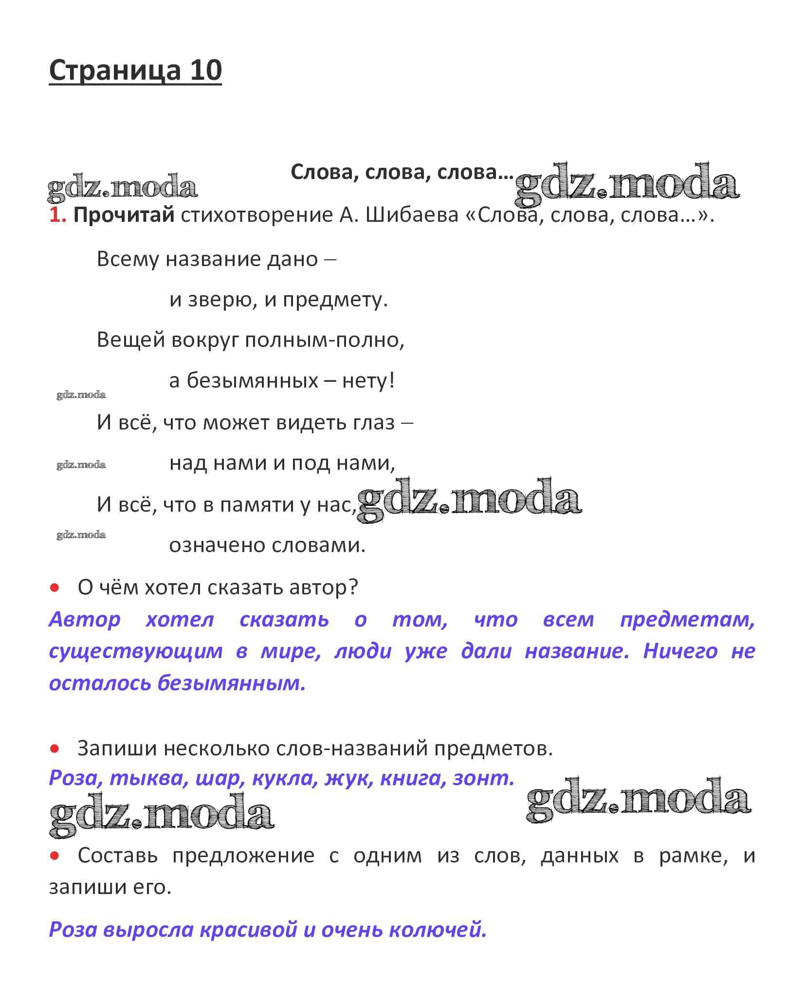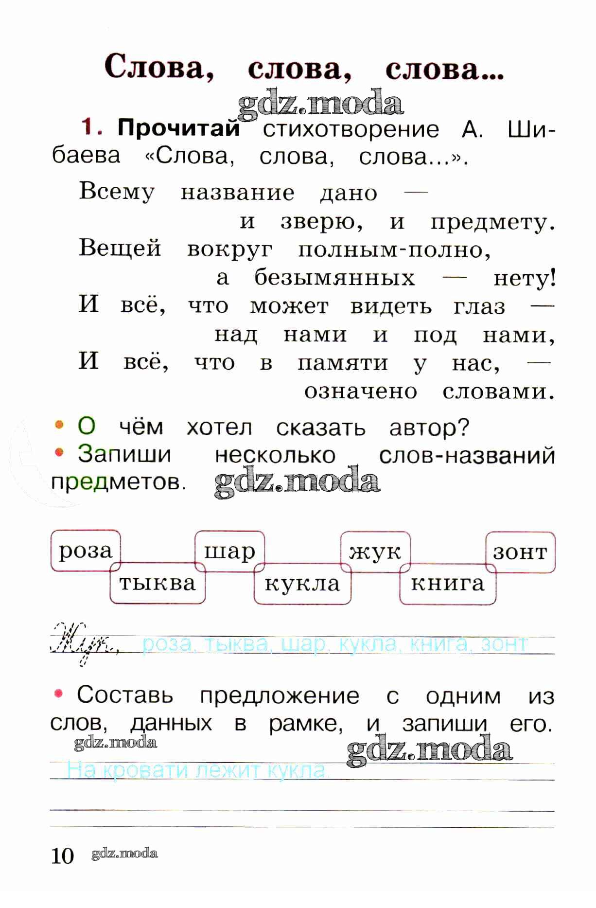 ОТВЕТ на задание № стр. 10 Рабочая тетрадь по Русскому языку 1 класс Канакина Школа России