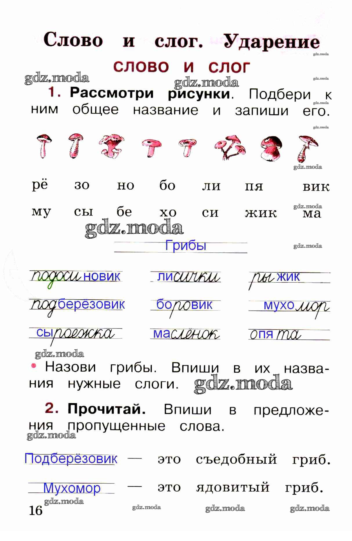 ОТВЕТ на задание № стр. 16 Рабочая тетрадь по Русскому языку 1 класс Канакина Школа России