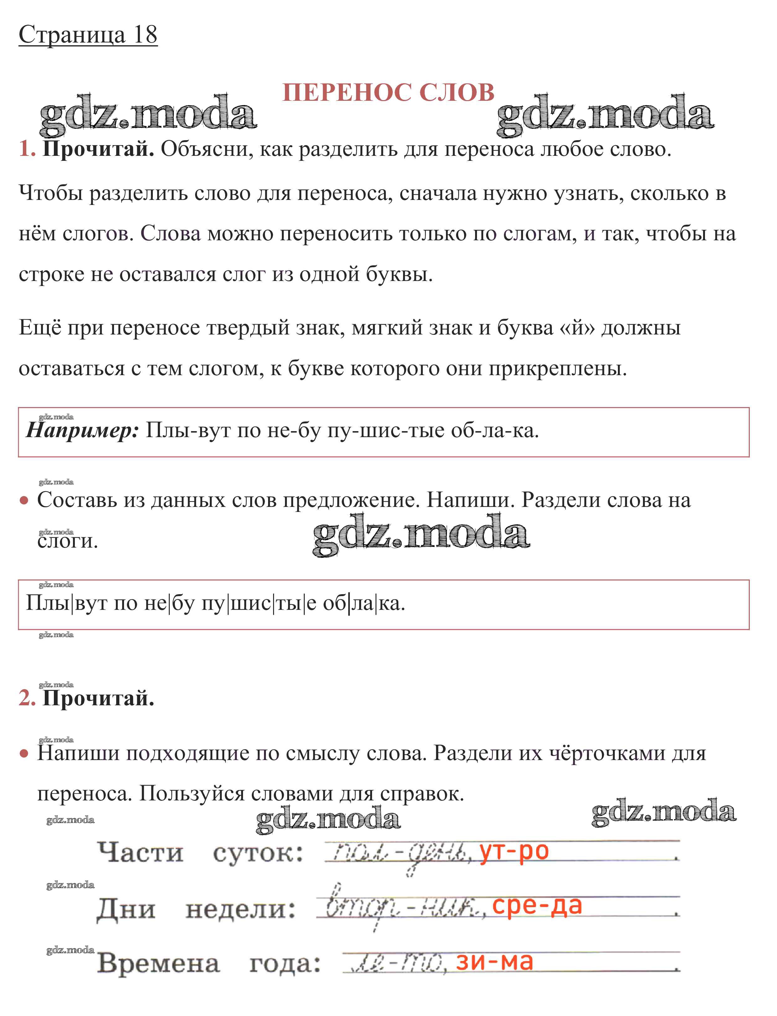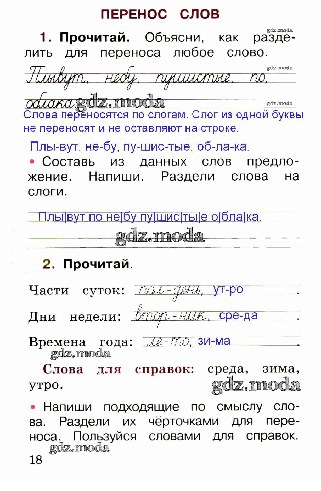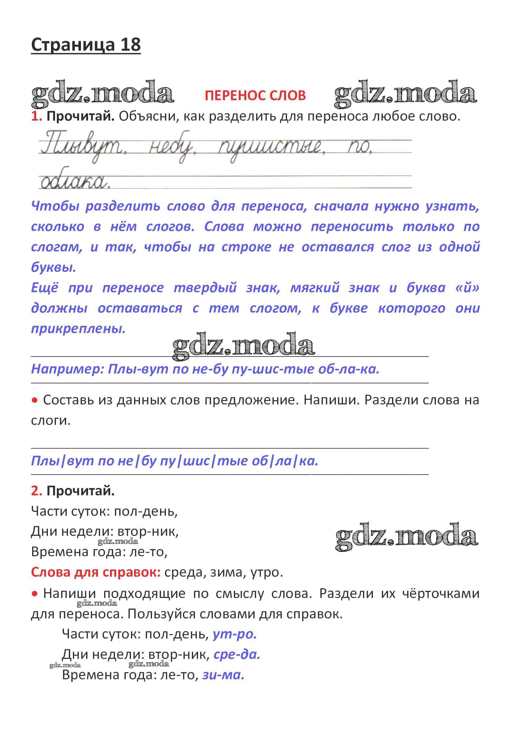 ОТВЕТ на задание № стр. 18 Рабочая тетрадь по Русскому языку 1 класс Канакина Школа России