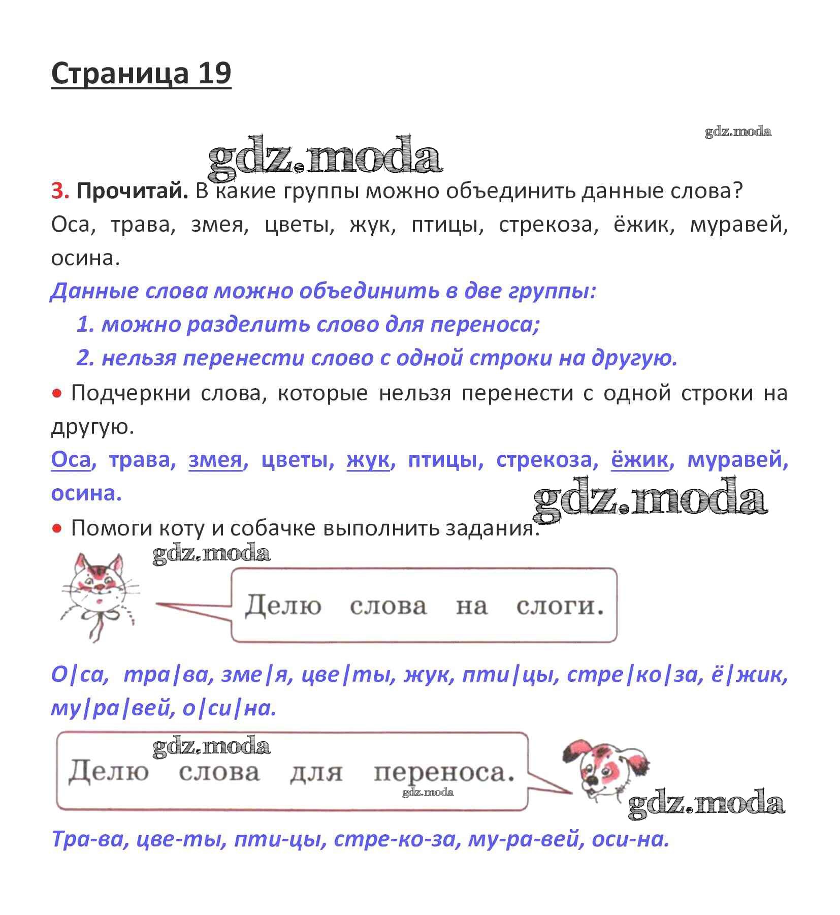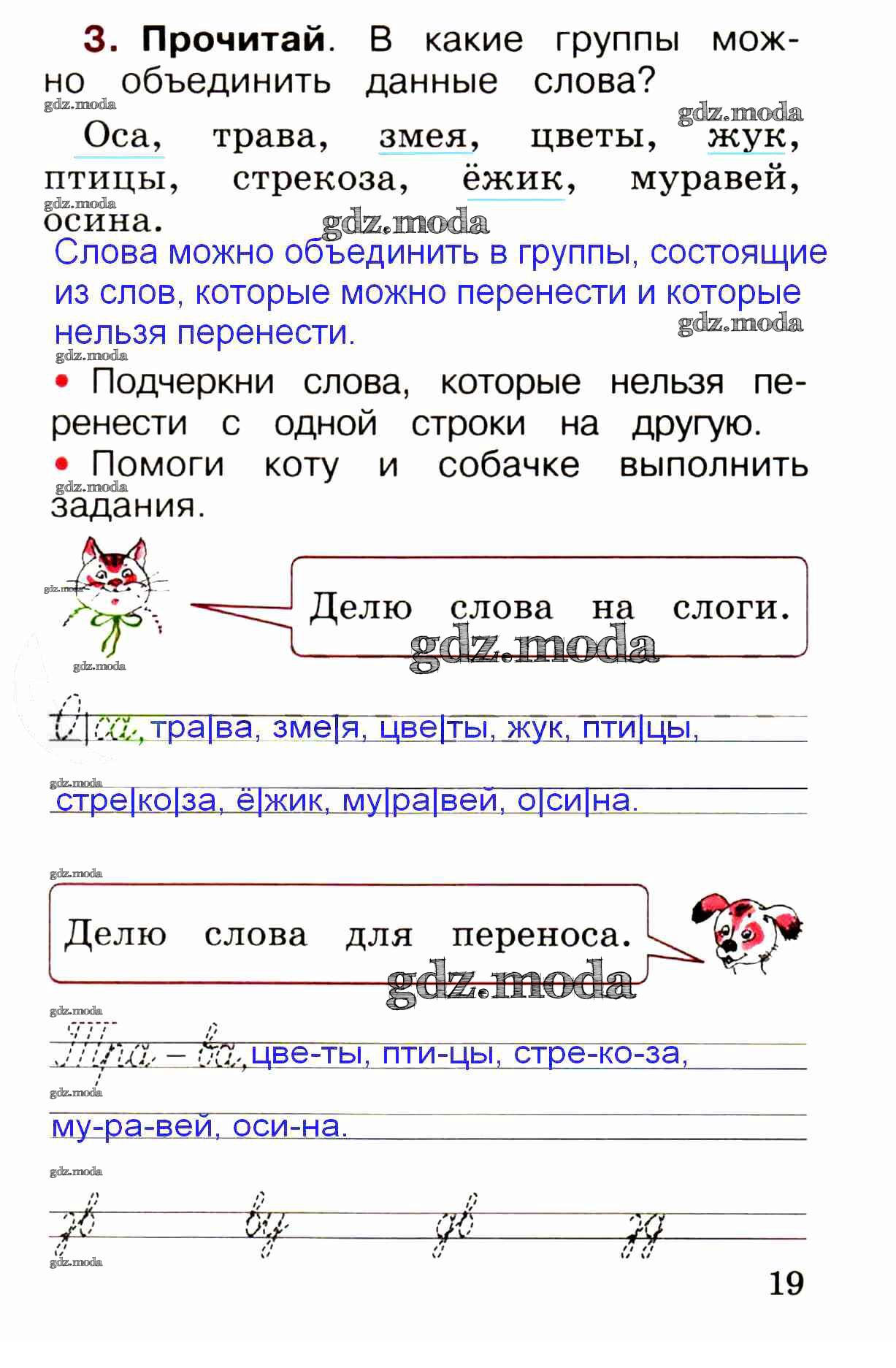 ОТВЕТ на задание № стр. 19 Рабочая тетрадь по Русскому языку 1 класс Канакина Школа России
