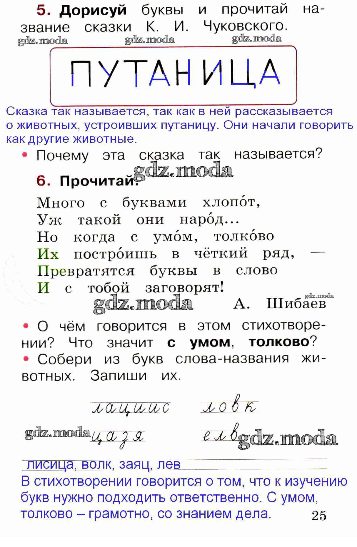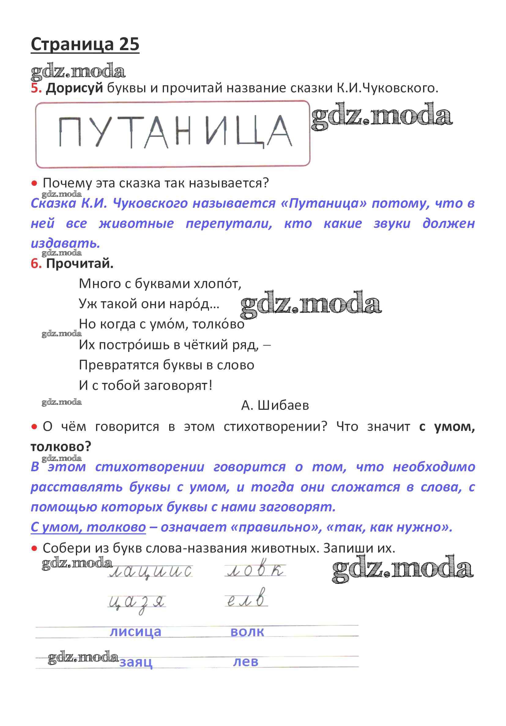 ОТВЕТ на задание № стр. 25 Рабочая тетрадь по Русскому языку 1 класс Канакина Школа России
