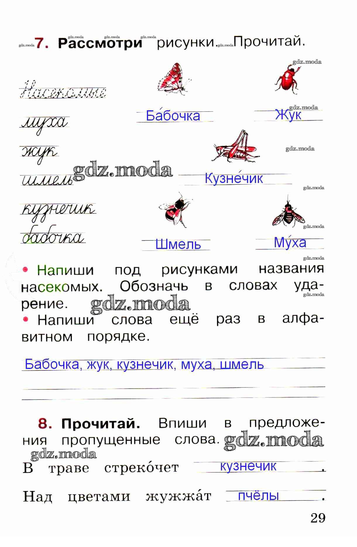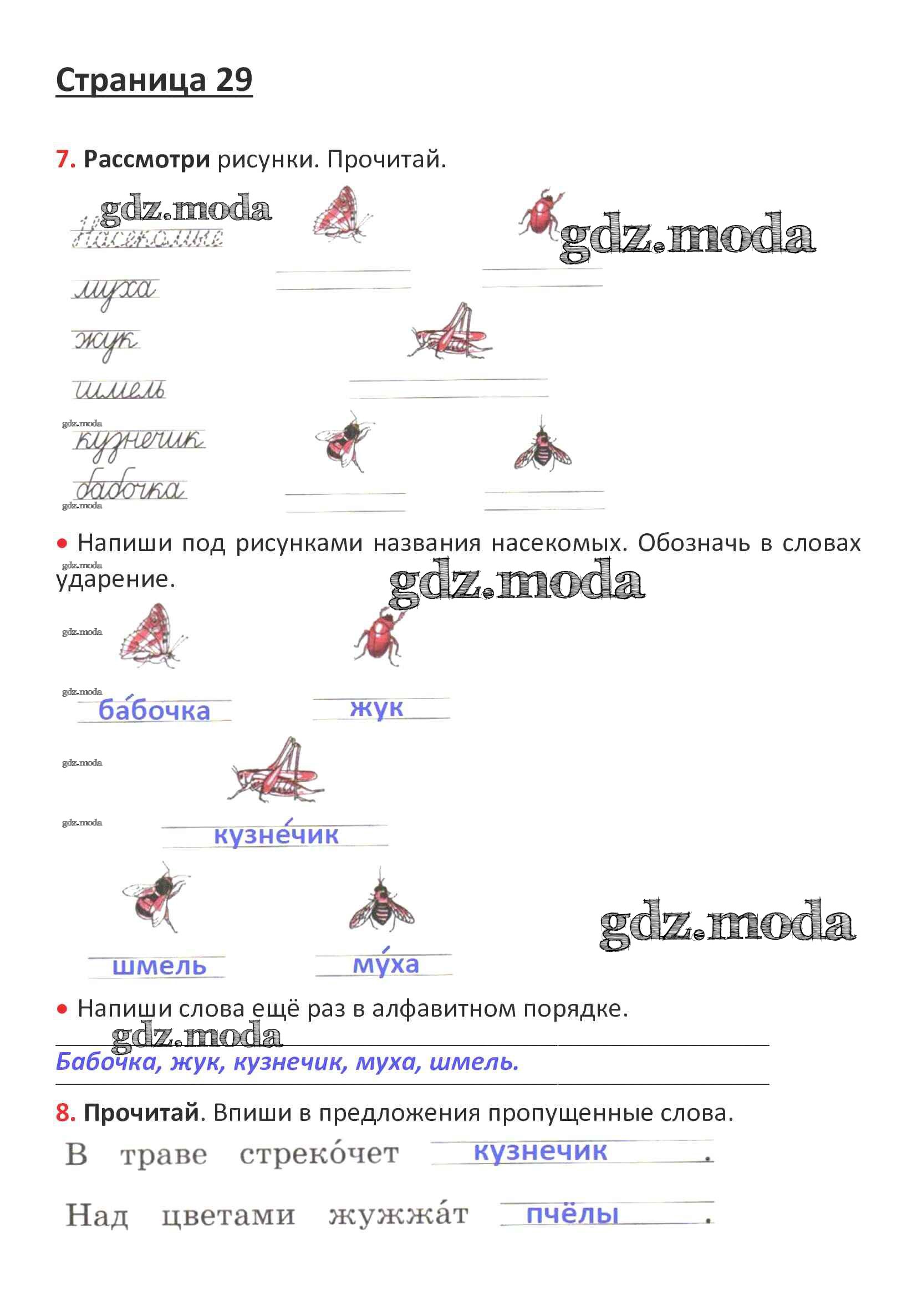 ОТВЕТ на задание № стр. 29 Рабочая тетрадь по Русскому языку 1 класс Канакина Школа России