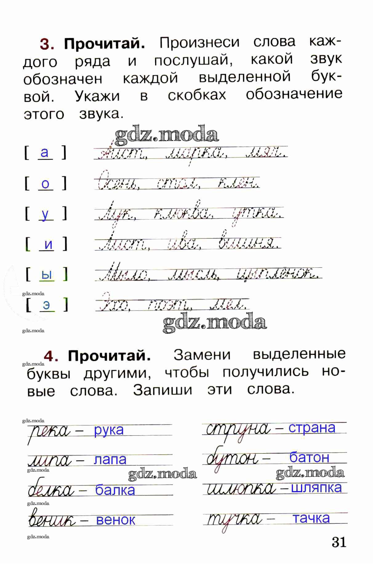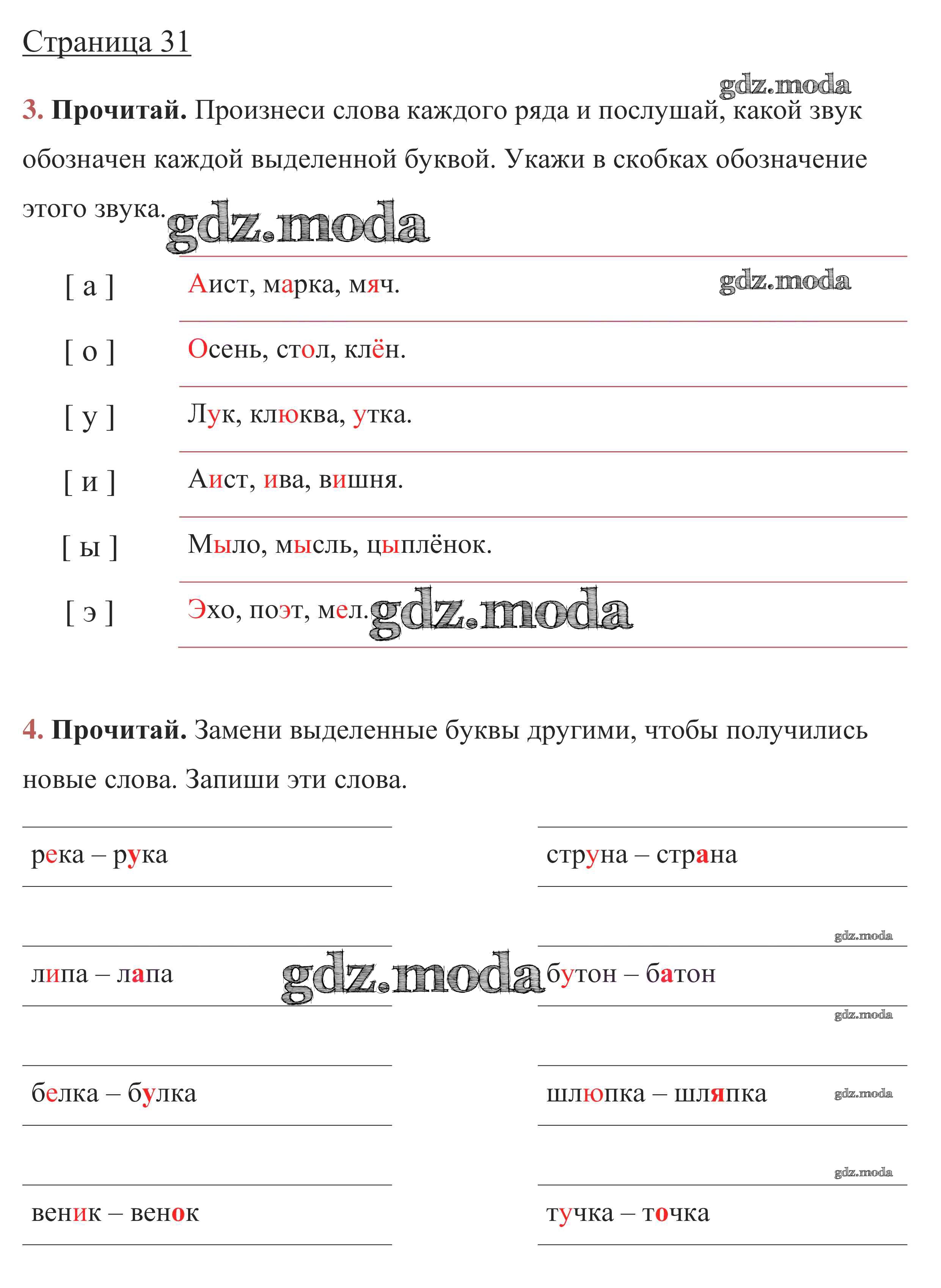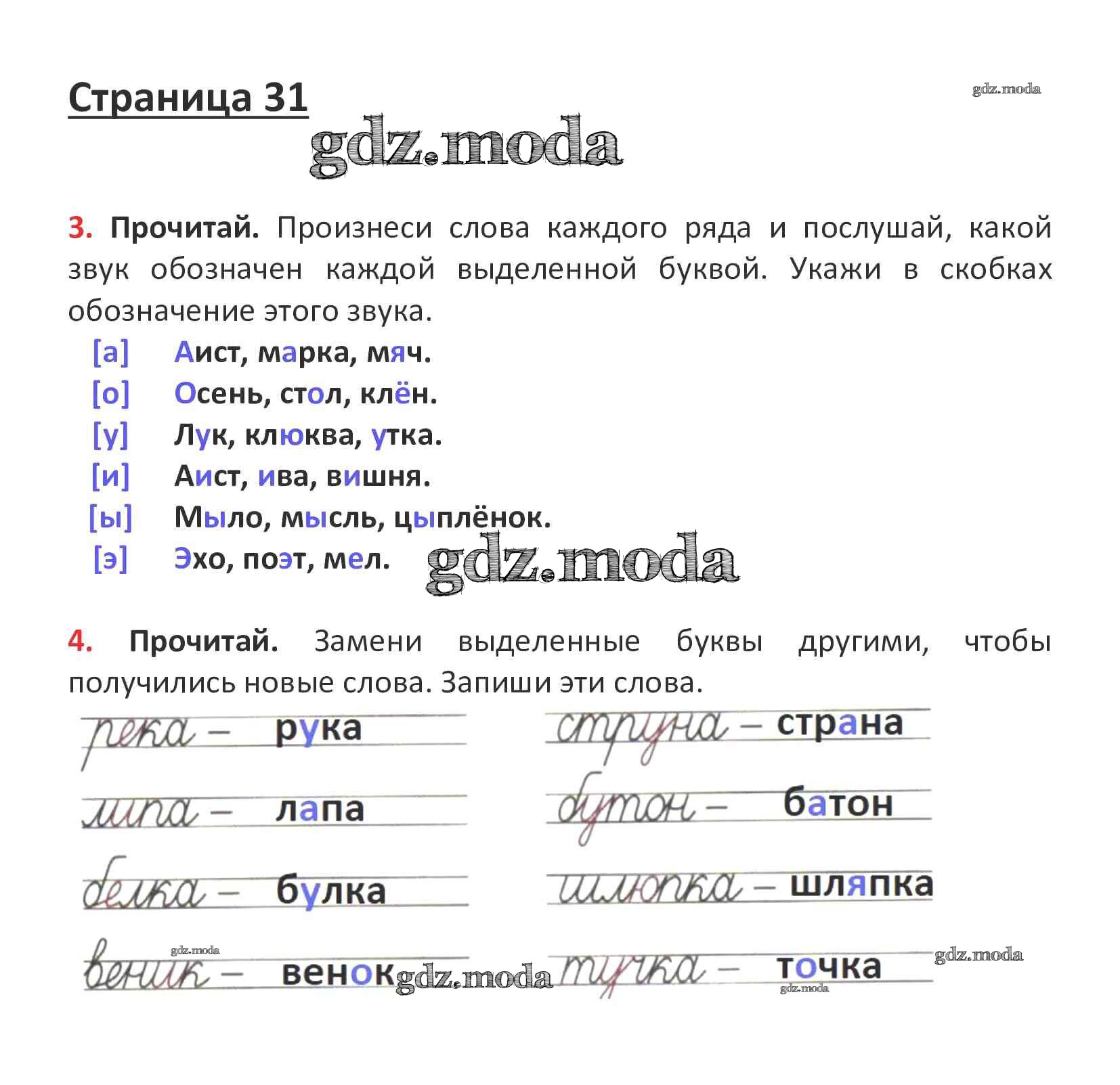 ОТВЕТ на задание № стр. 31 Рабочая тетрадь по Русскому языку 1 класс Канакина Школа России