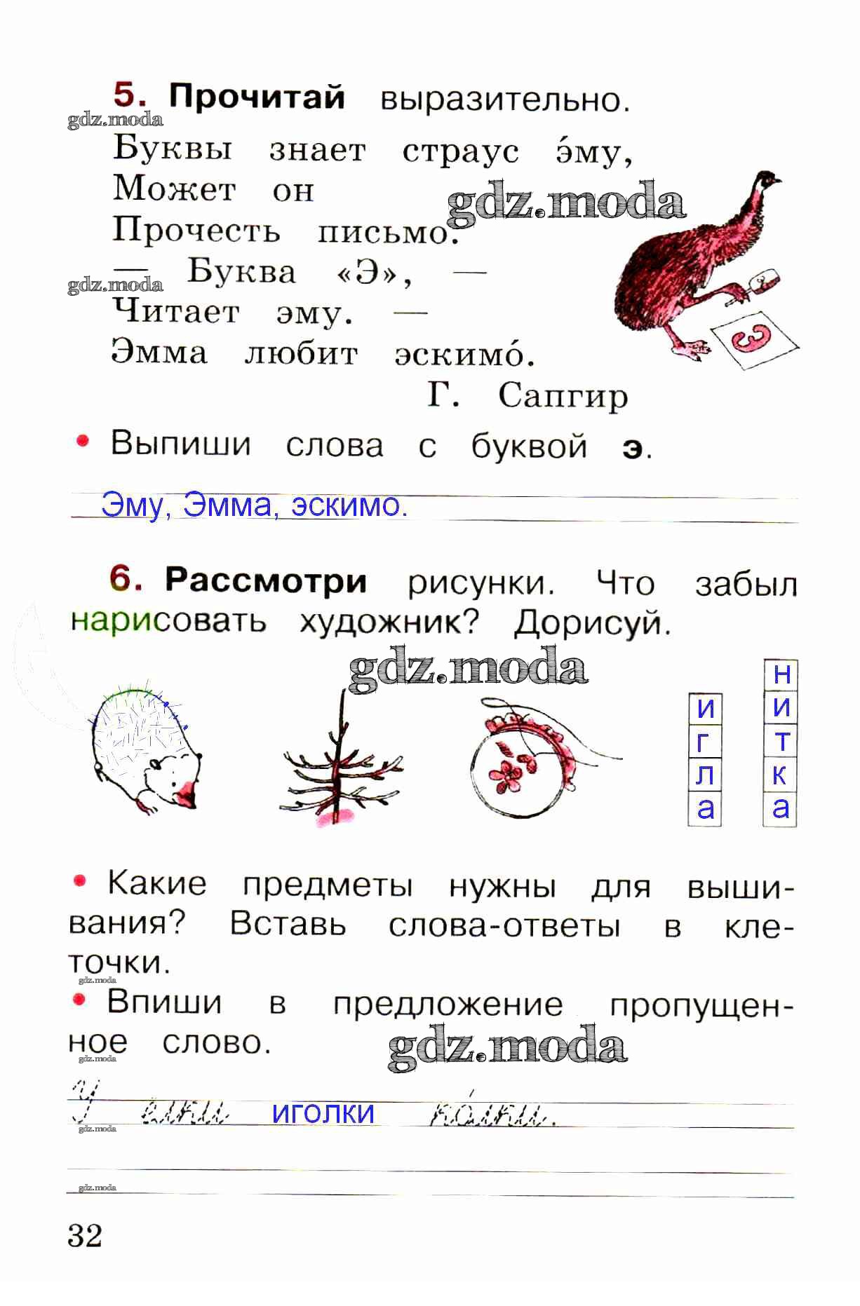 ОТВЕТ на задание № стр. 32 Рабочая тетрадь по Русскому языку 1 класс Канакина Школа России