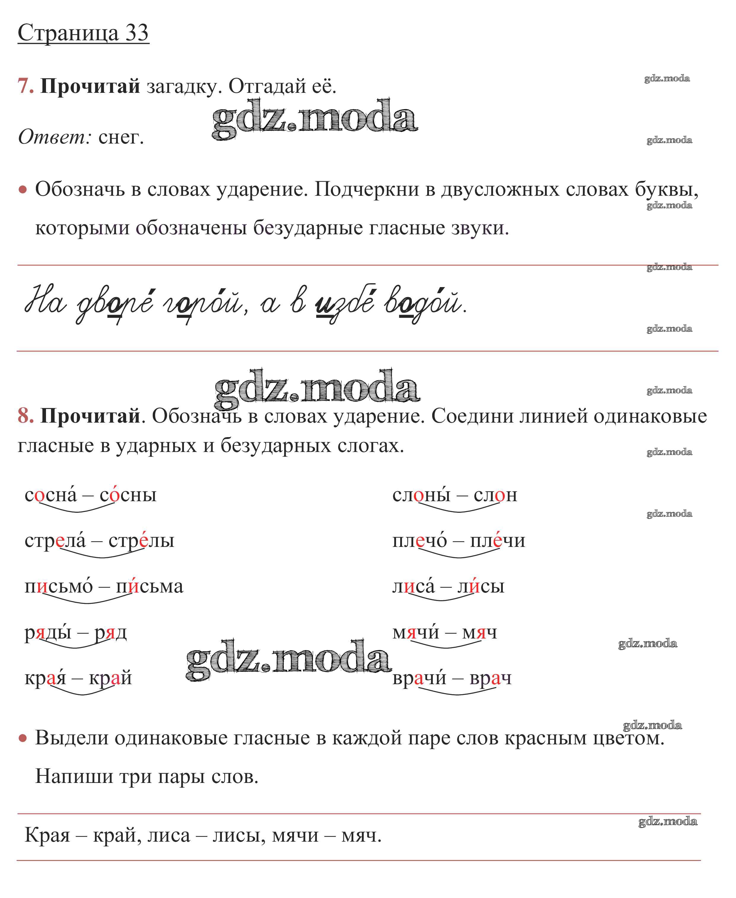 ОТВЕТ на задание № стр. 33 Рабочая тетрадь по Русскому языку 1 класс Канакина Школа России