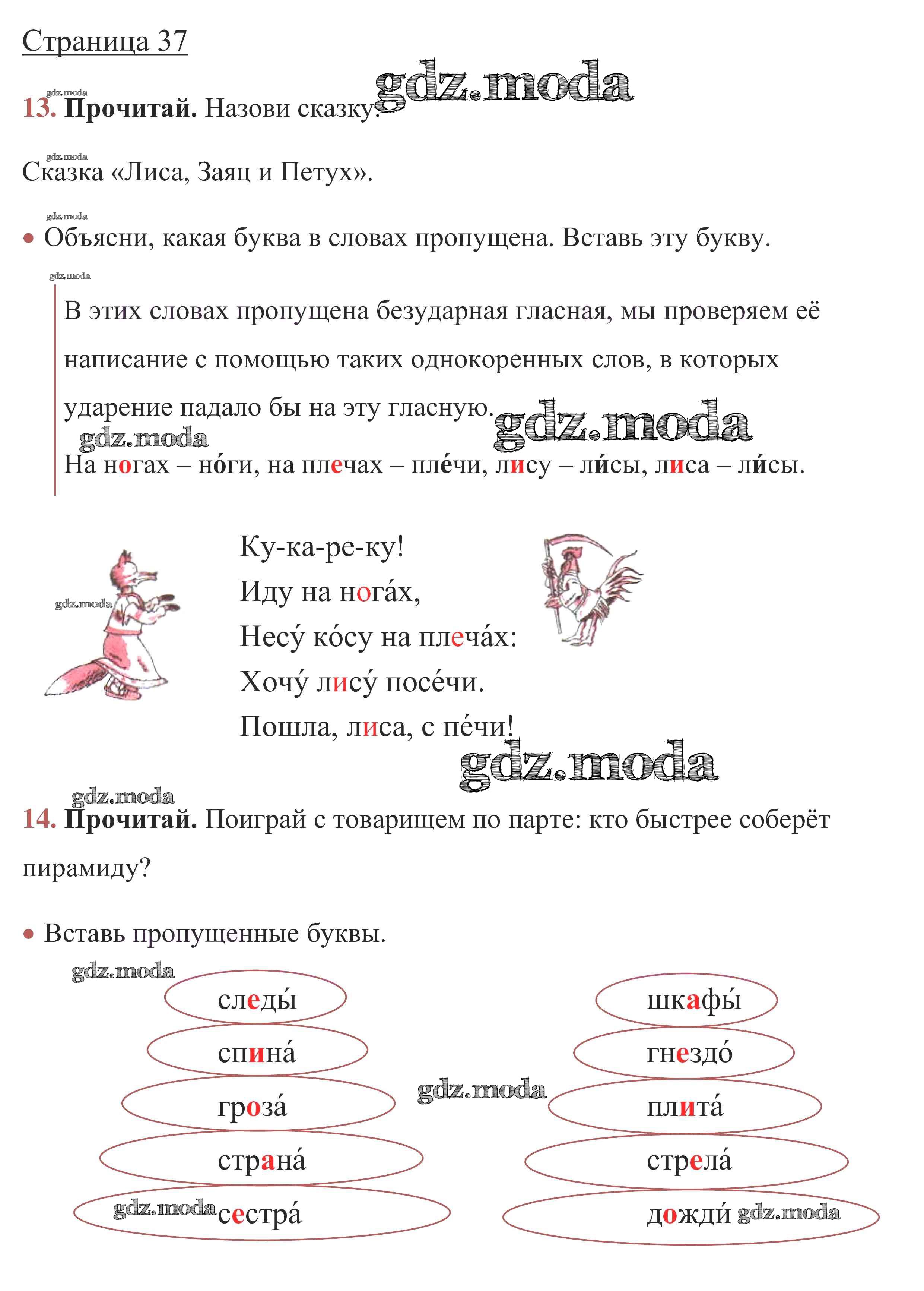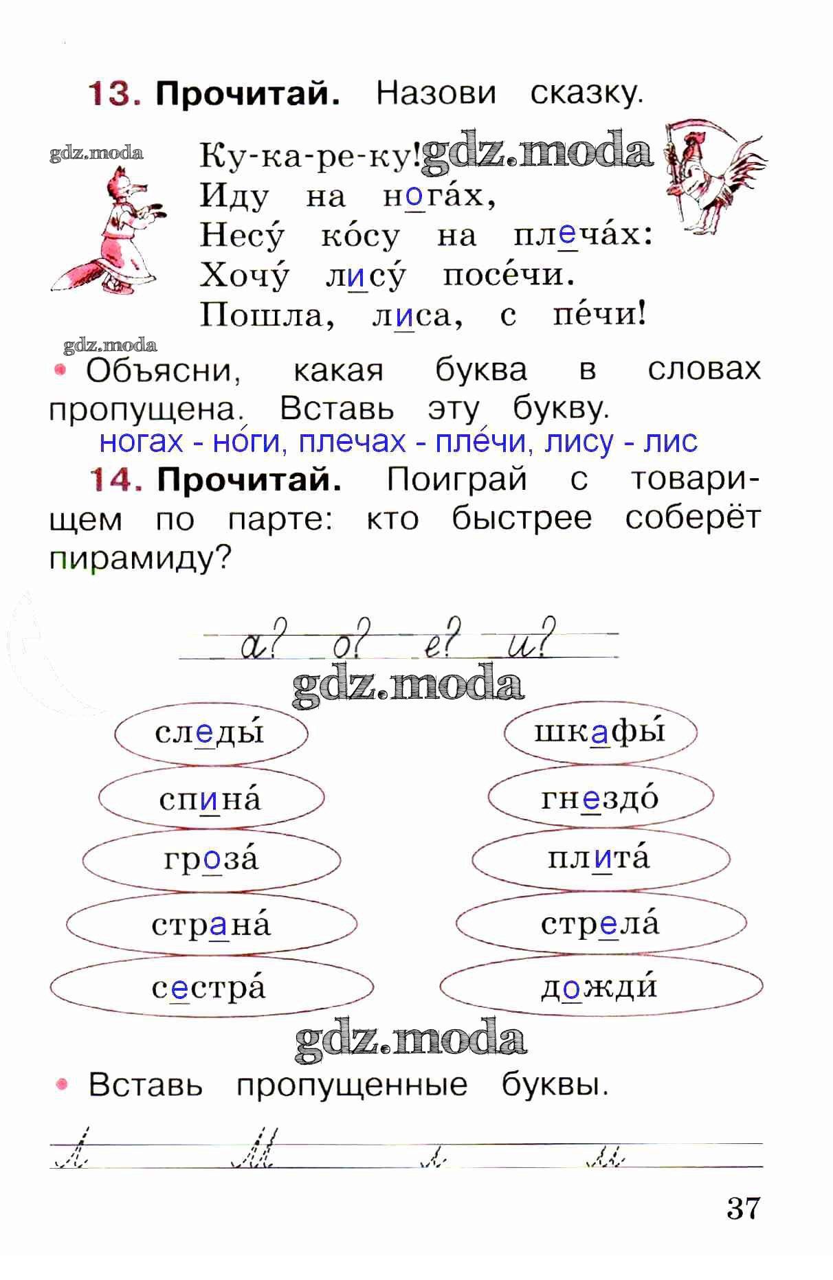 ОТВЕТ на задание № стр. 37 Рабочая тетрадь по Русскому языку 1 класс Канакина Школа России