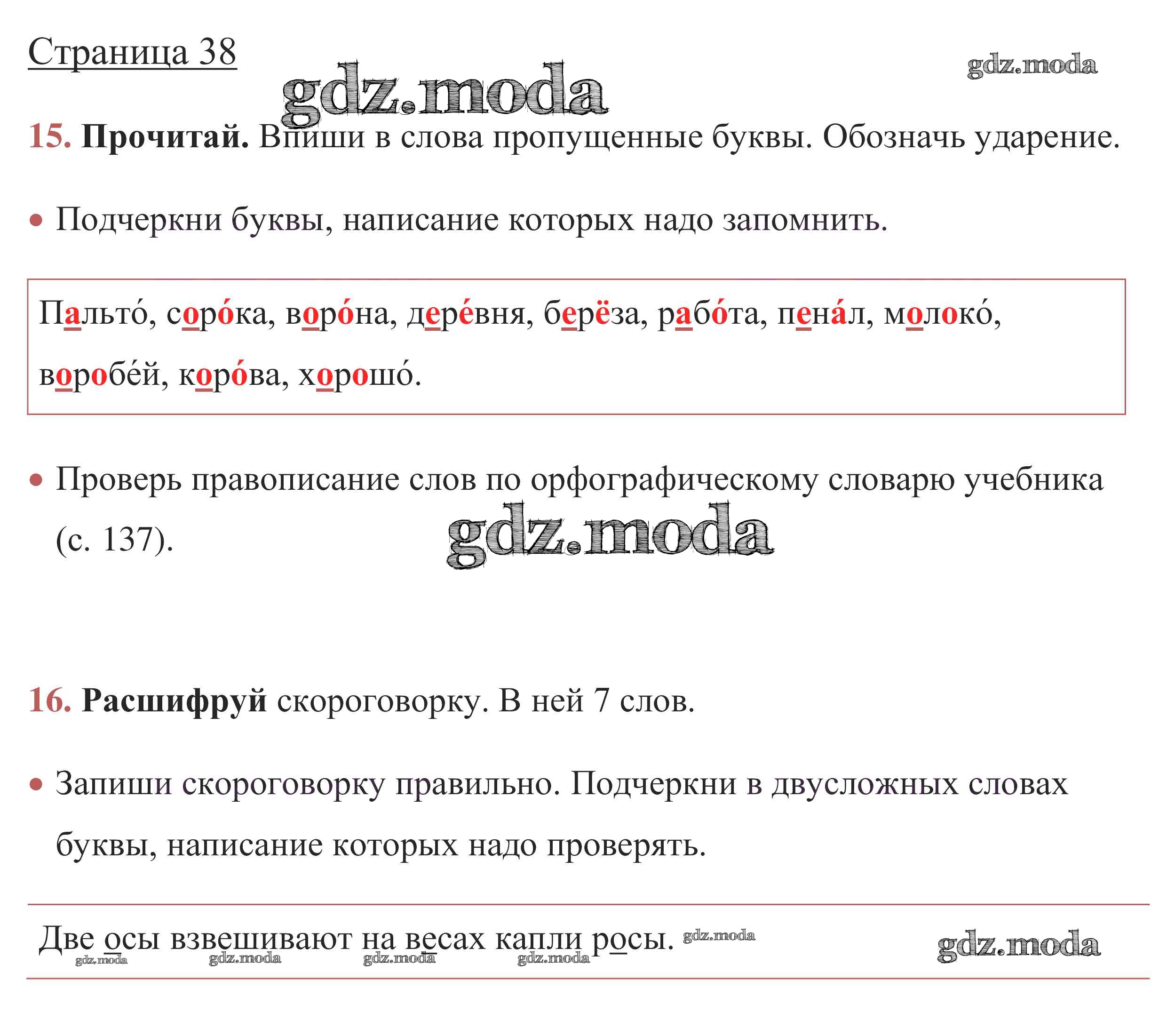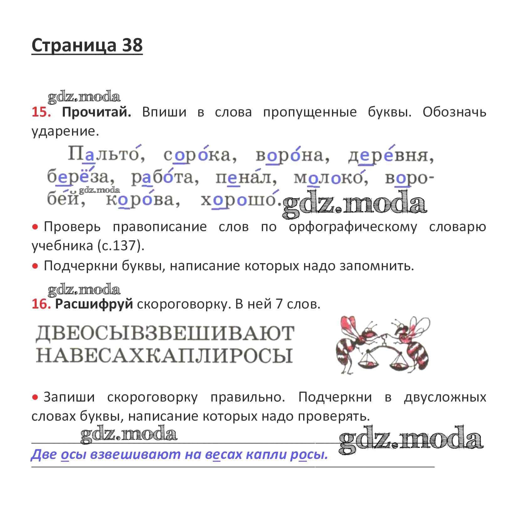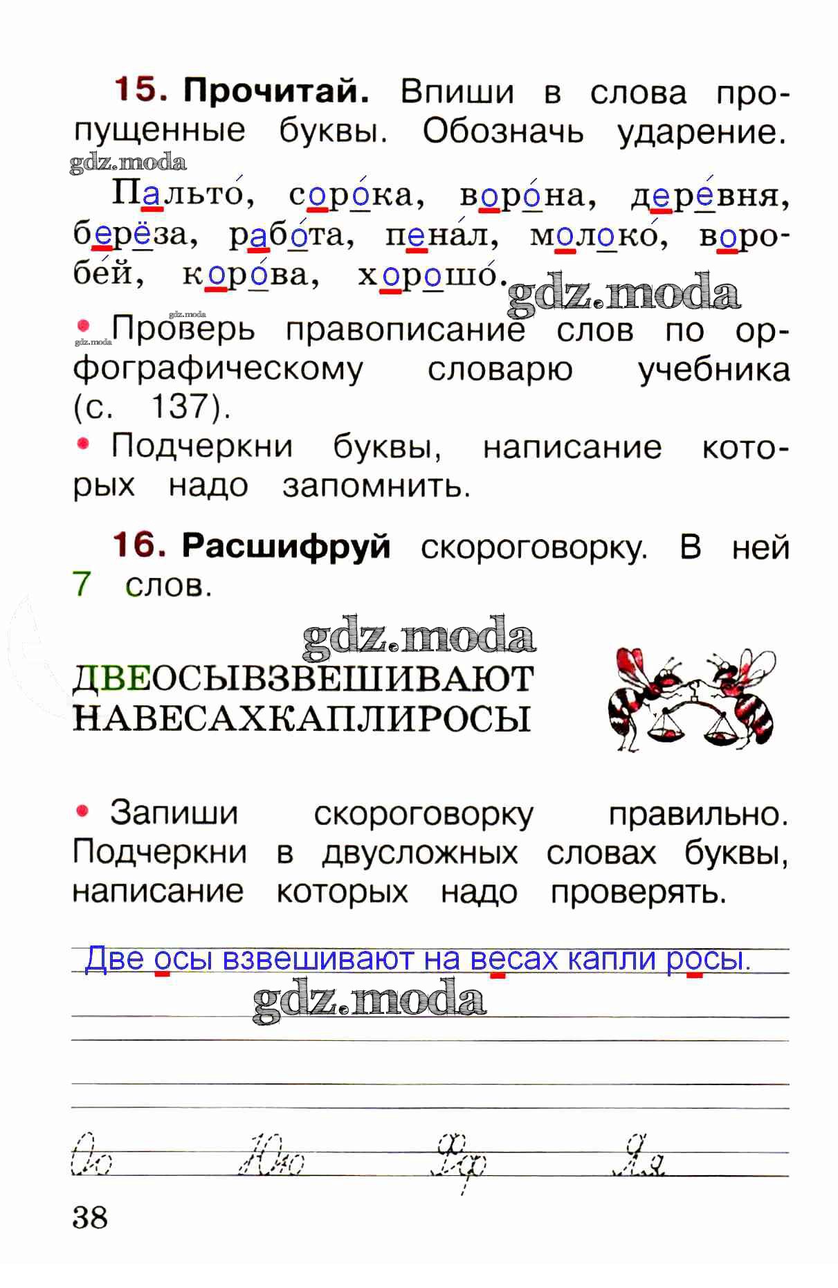 ОТВЕТ на задание № стр. 38 Рабочая тетрадь по Русскому языку 1 класс Канакина Школа России