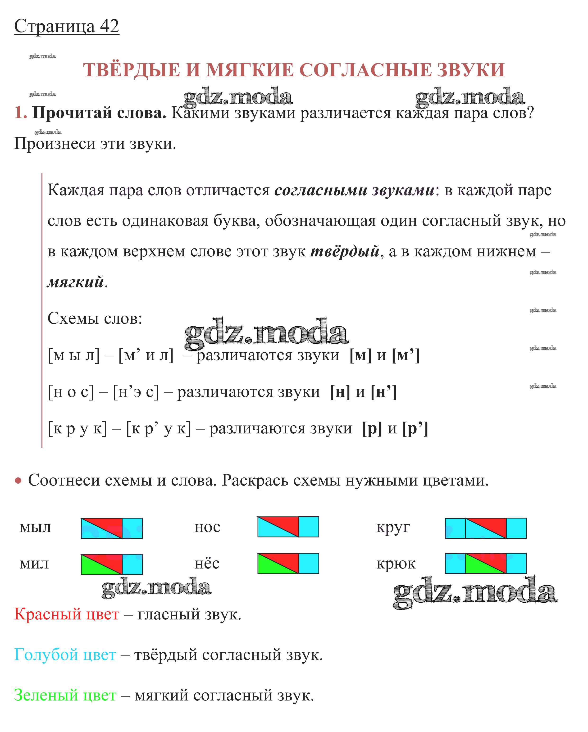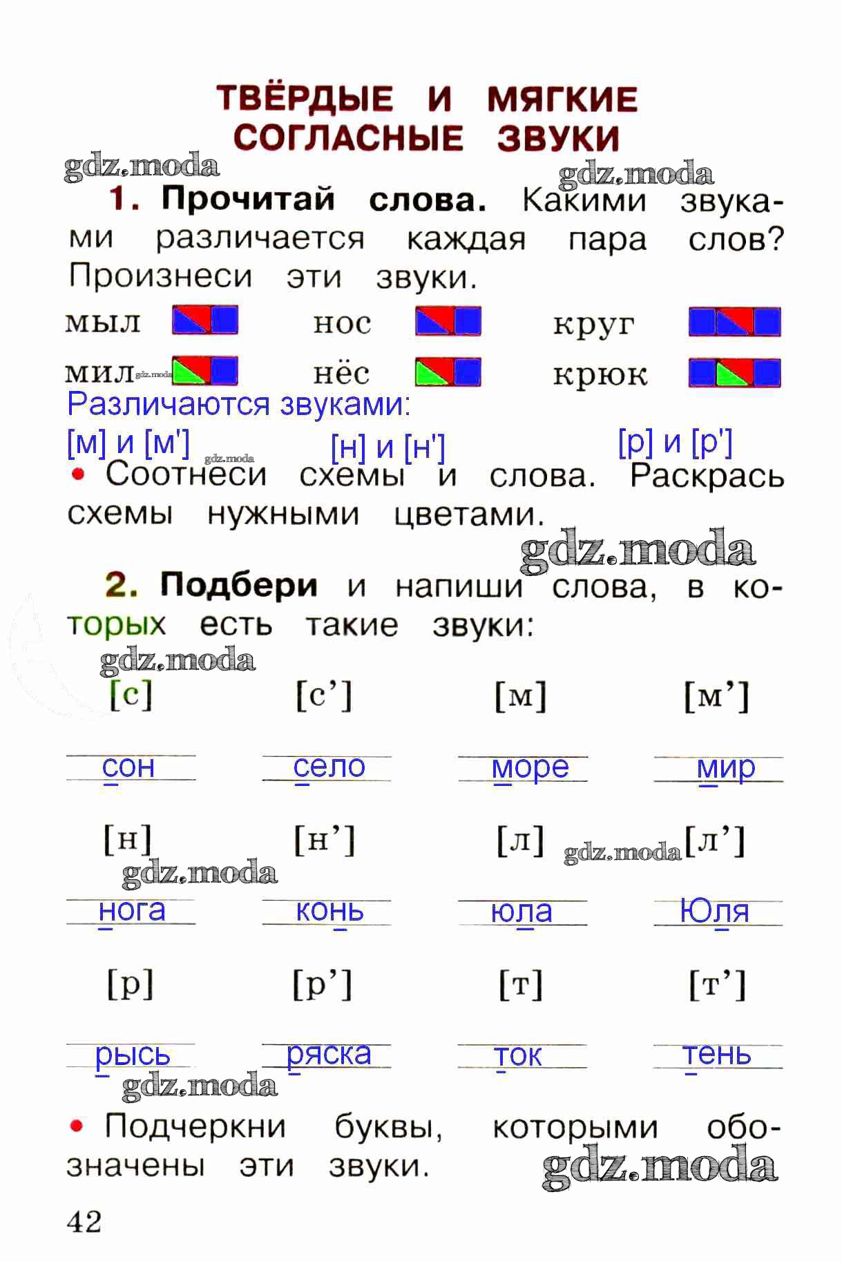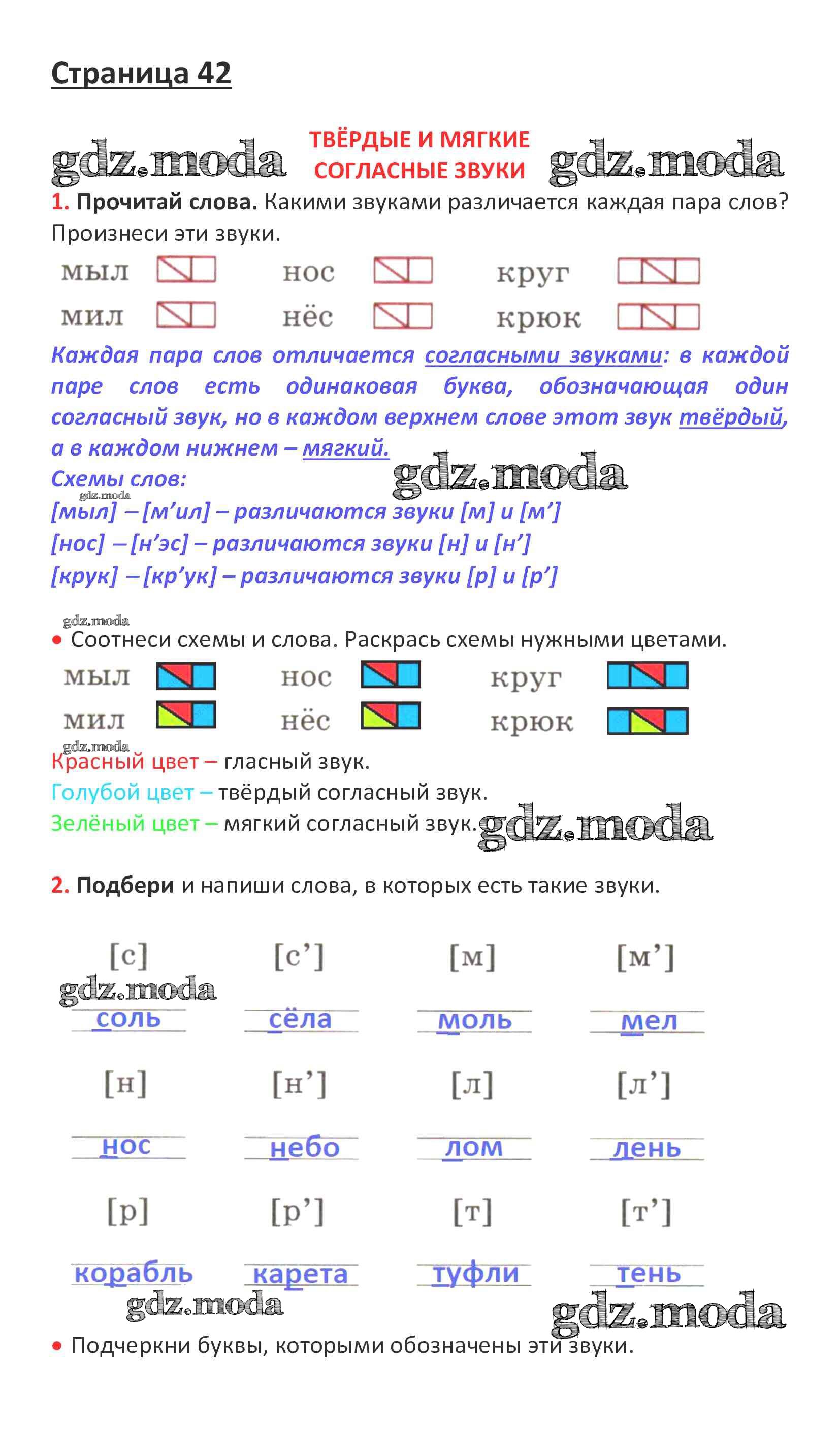 ОТВЕТ на задание № стр. 42 Рабочая тетрадь по Русскому языку 1 класс Канакина Школа России