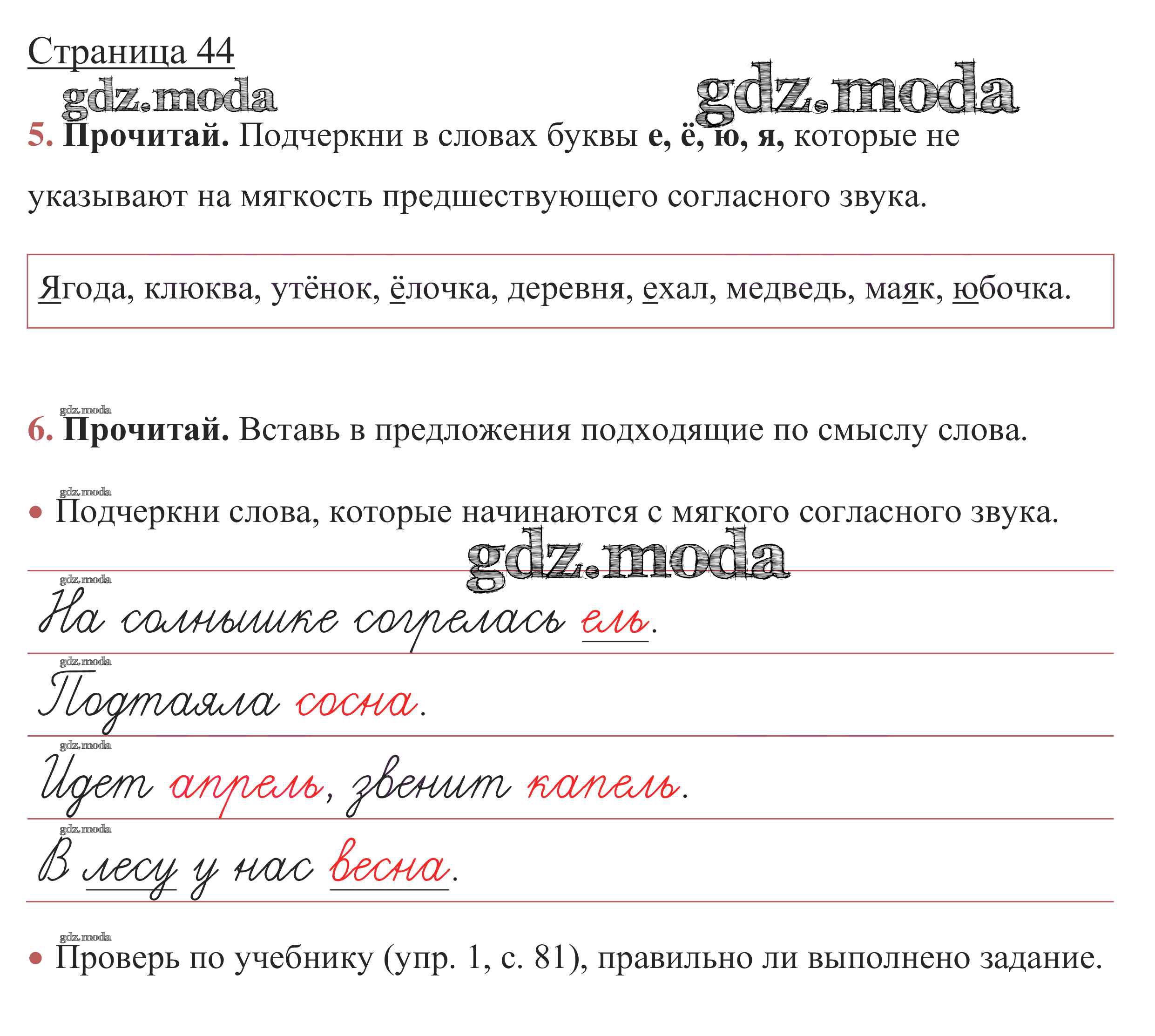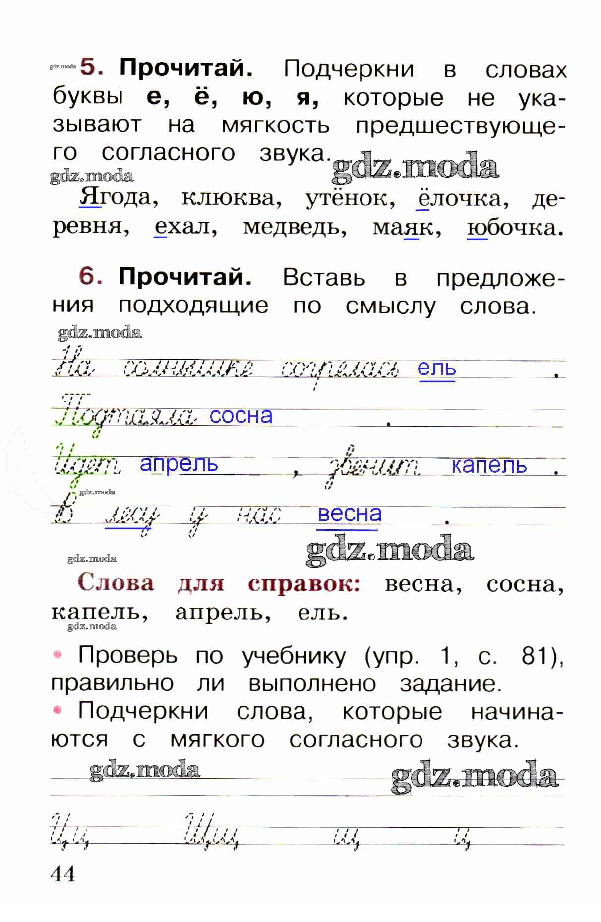 ОТВЕТ на задание № стр. 44 Рабочая тетрадь по Русскому языку 1 класс Канакина Школа России