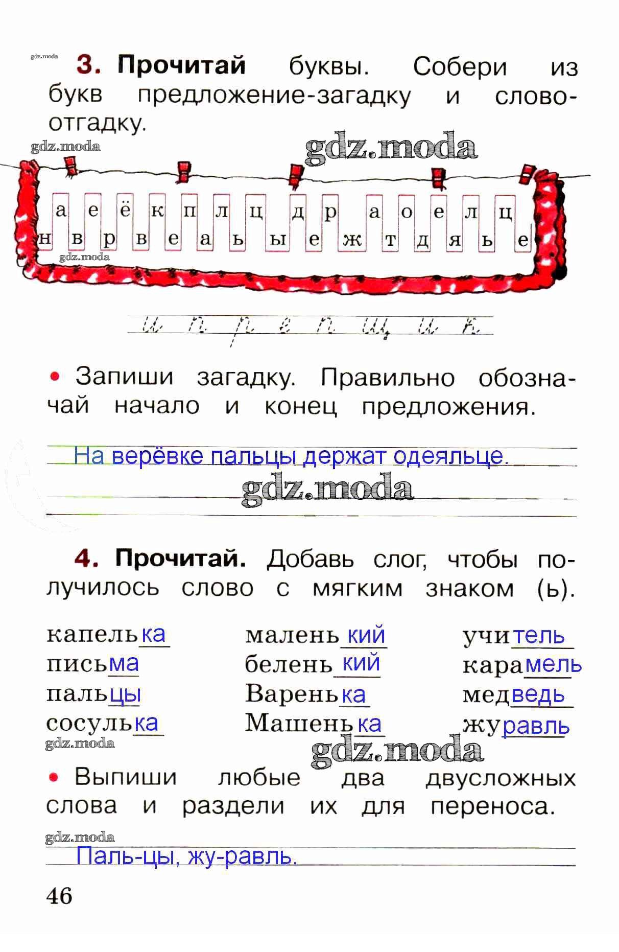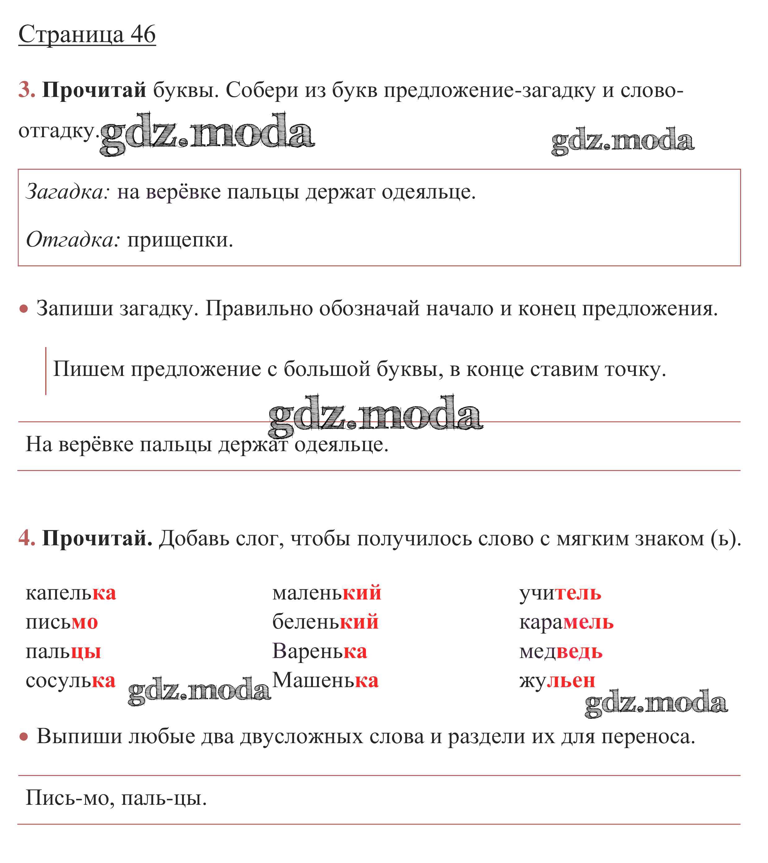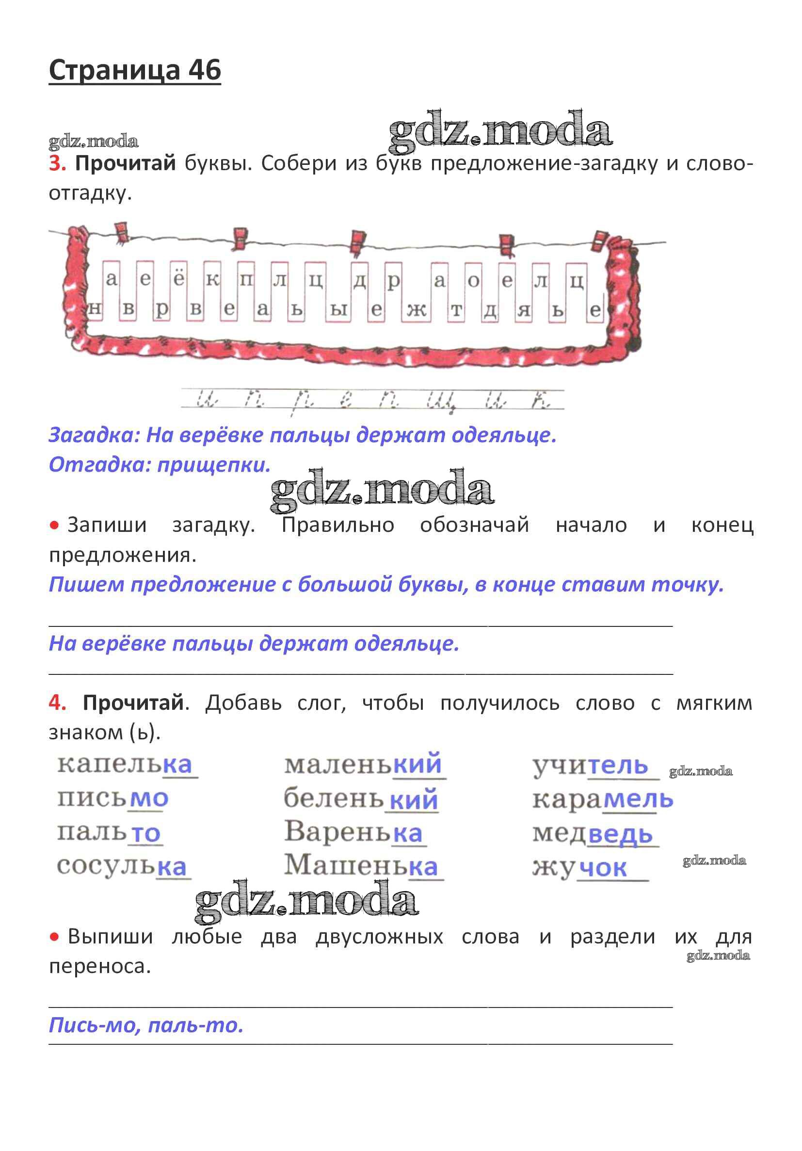 ОТВЕТ на задание № стр. 46 Рабочая тетрадь по Русскому языку 1 класс Канакина Школа России