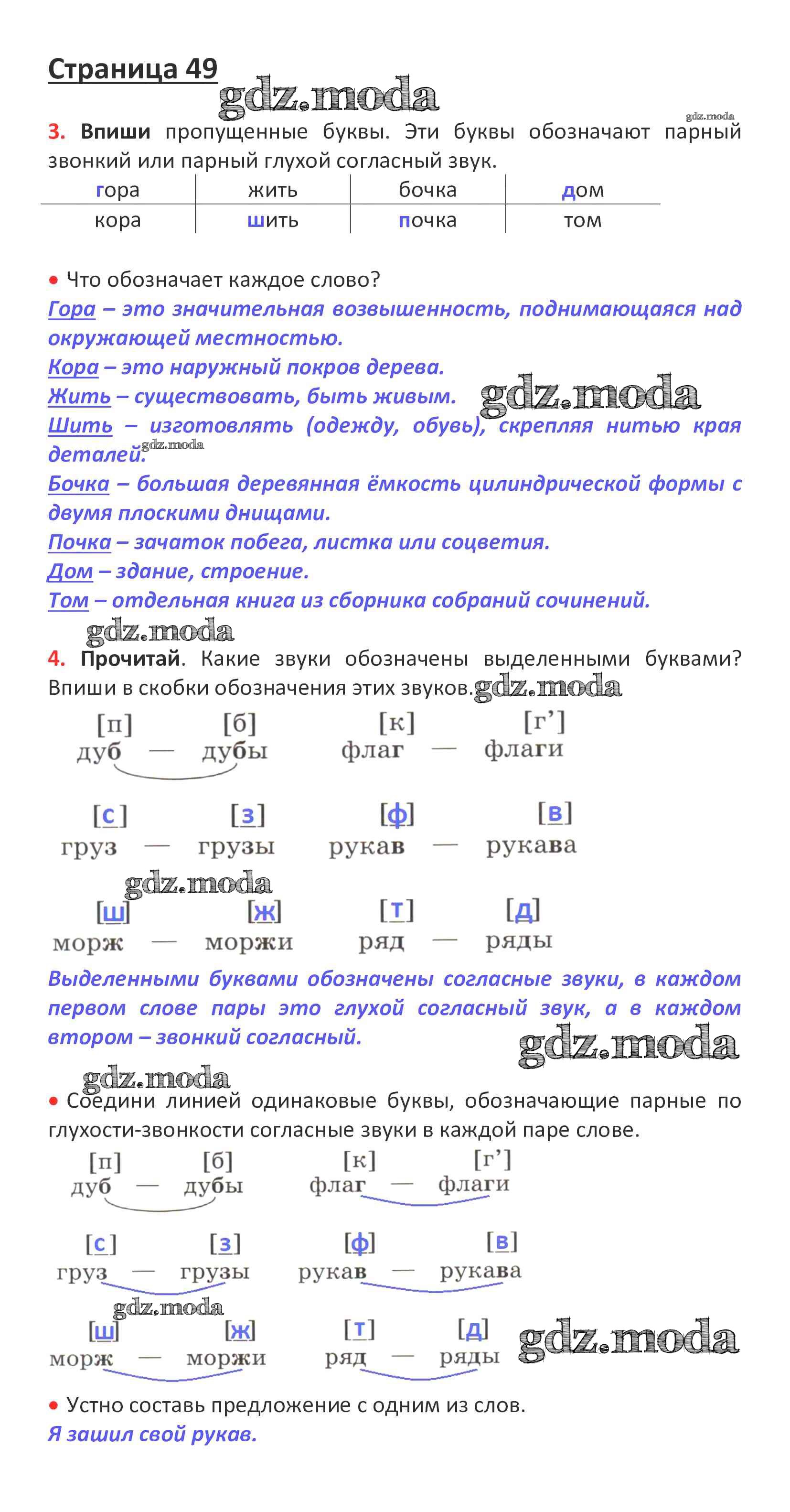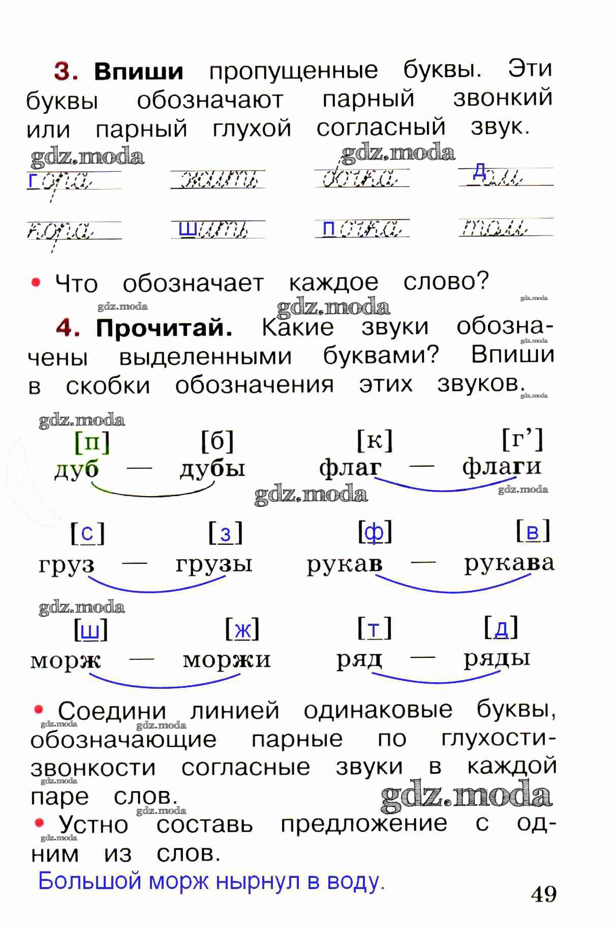 ОТВЕТ на задание № стр. 49 Рабочая тетрадь по Русскому языку 1 класс Канакина Школа России