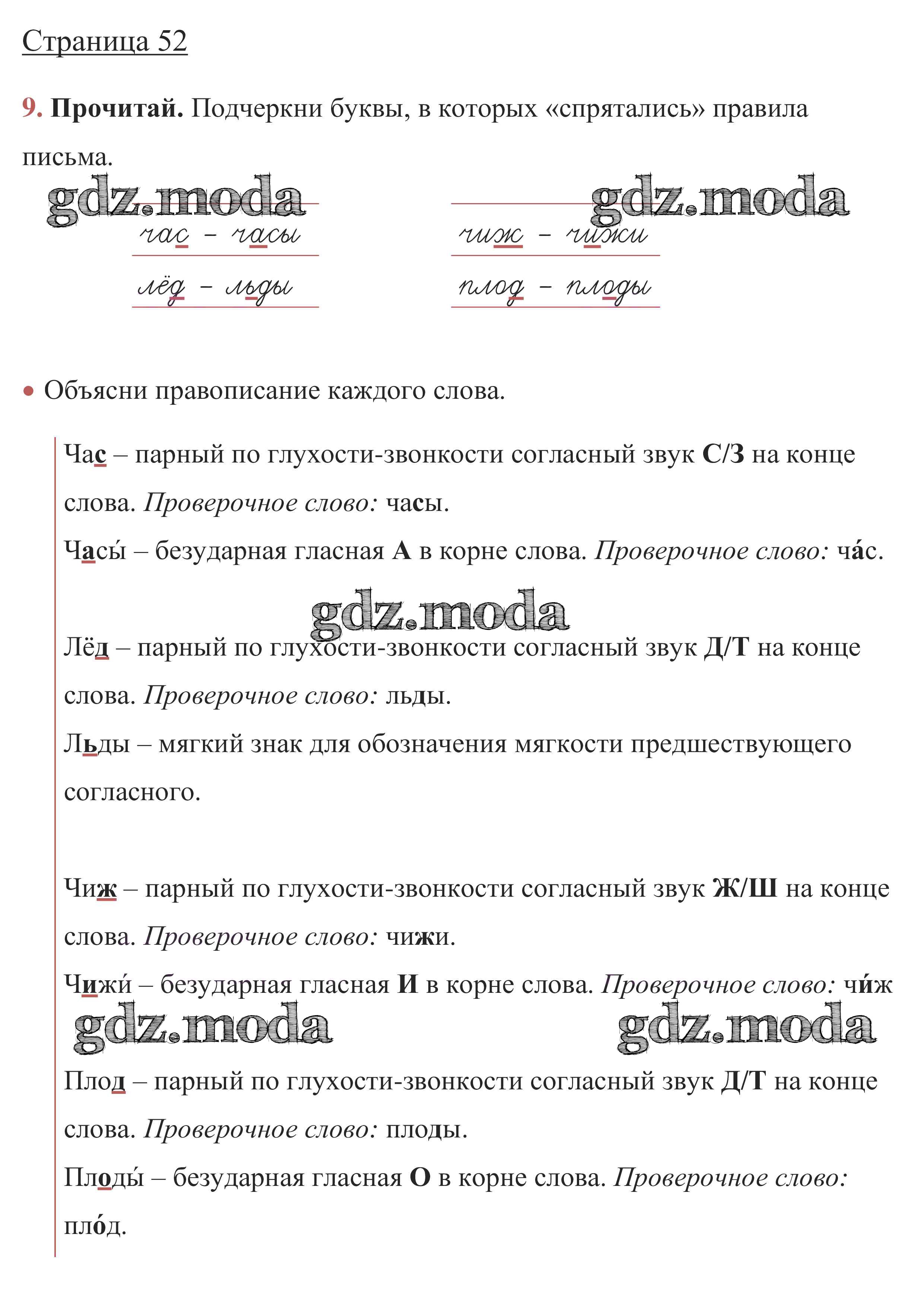 ОТВЕТ на задание № стр. 52 Рабочая тетрадь по Русскому языку 1 класс Канакина Школа России