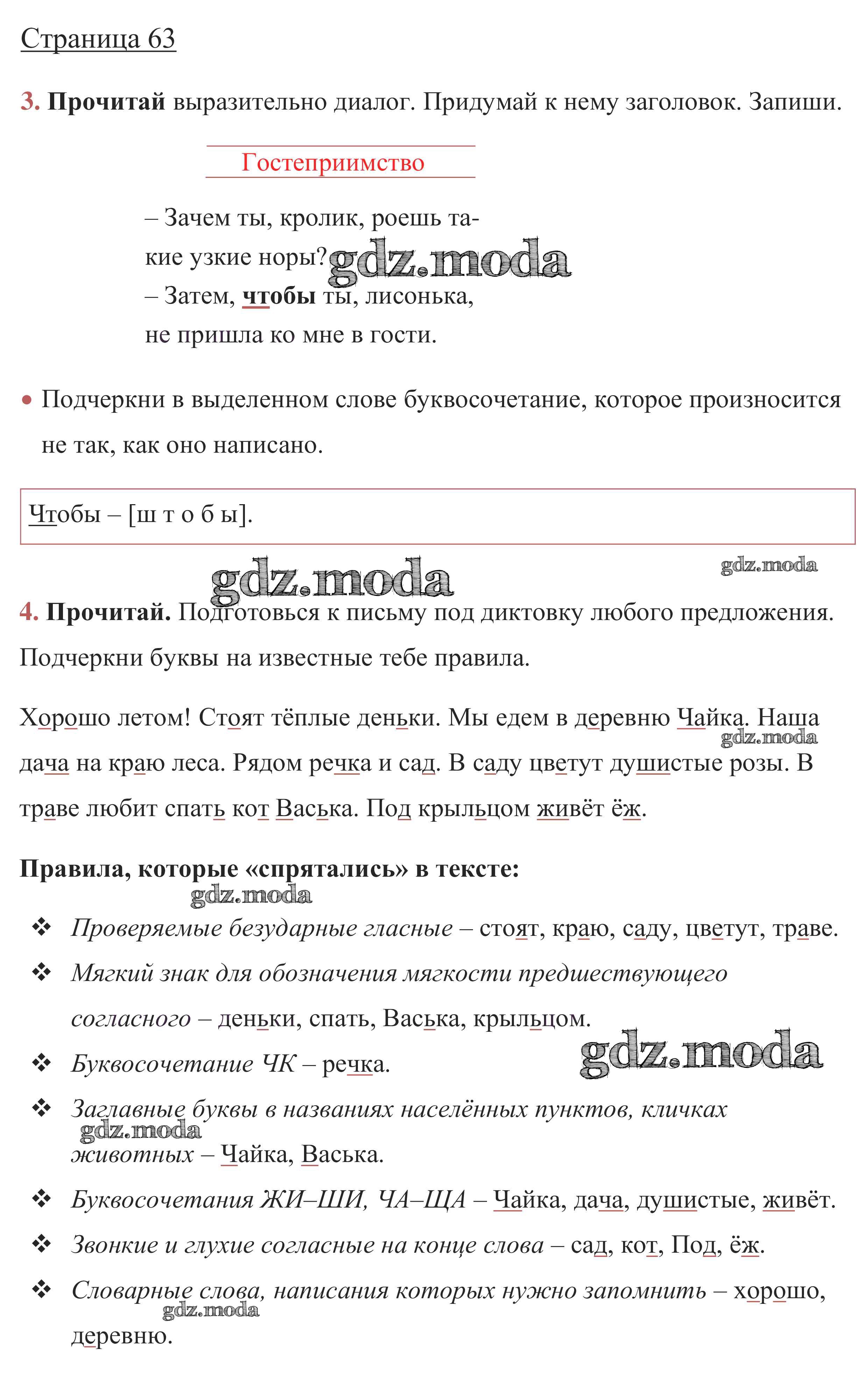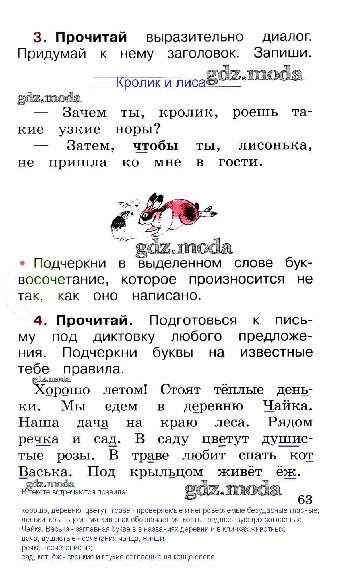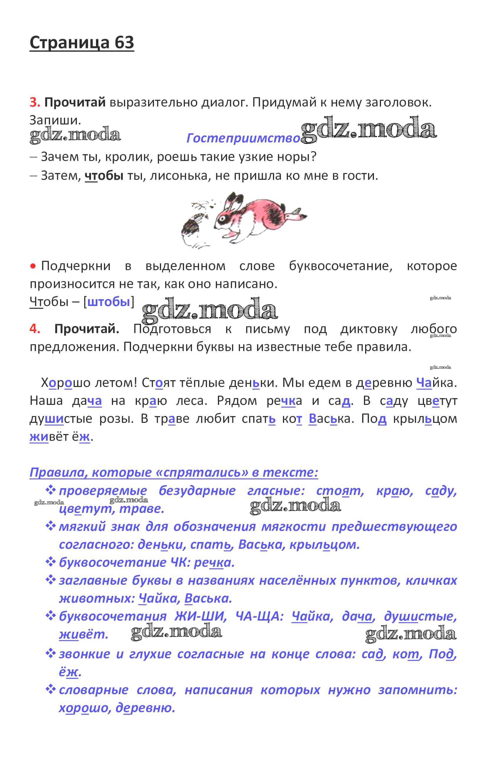 ОТВЕТ на задание № стр. 63 Рабочая тетрадь по Русскому языку 1 класс Канакина Школа России