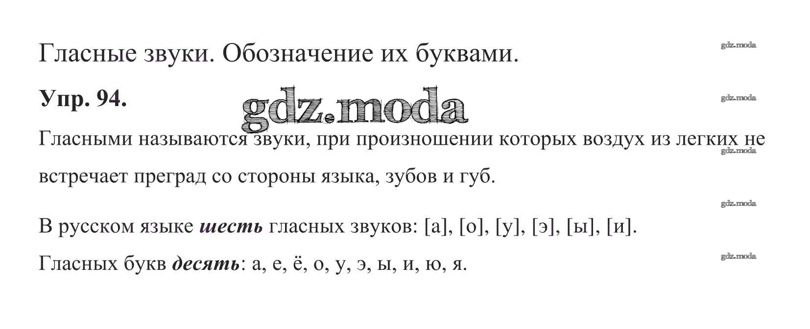 тема 10. гласные звуки. обозначение их буквами / упр. 94
