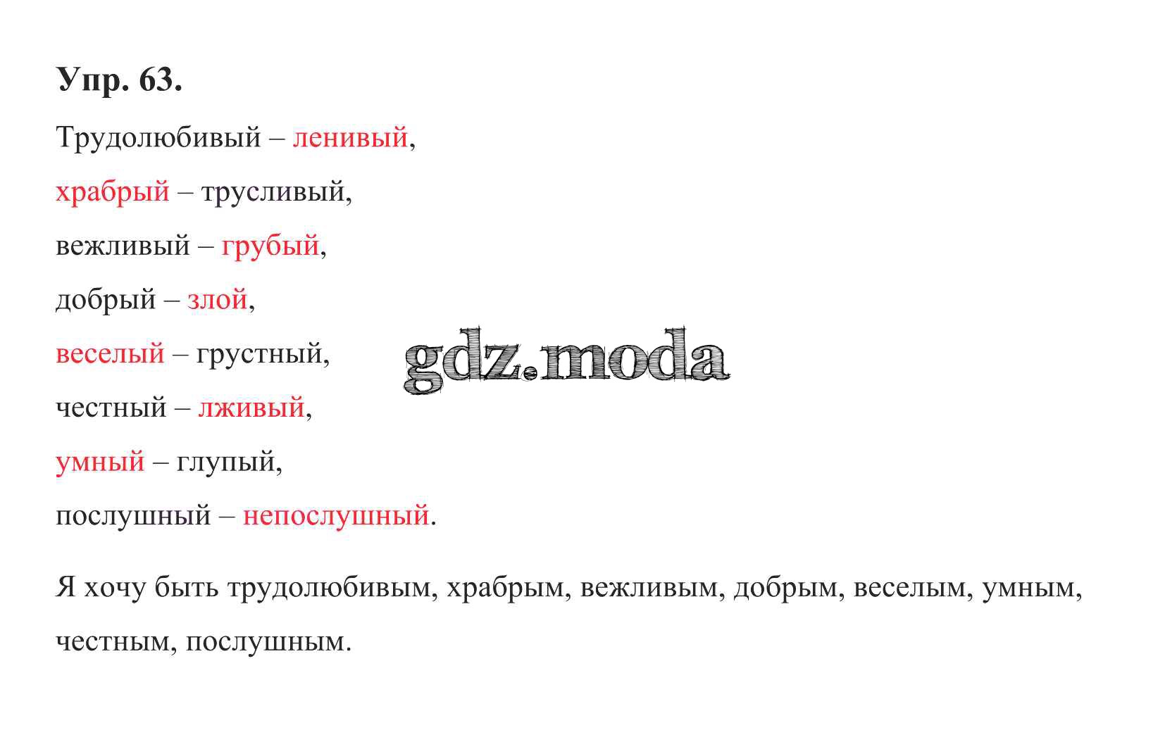 ОТВЕТ на задание № Упр. 63 Учебник по Русскому языку 1 класс Климанова Перспектива
