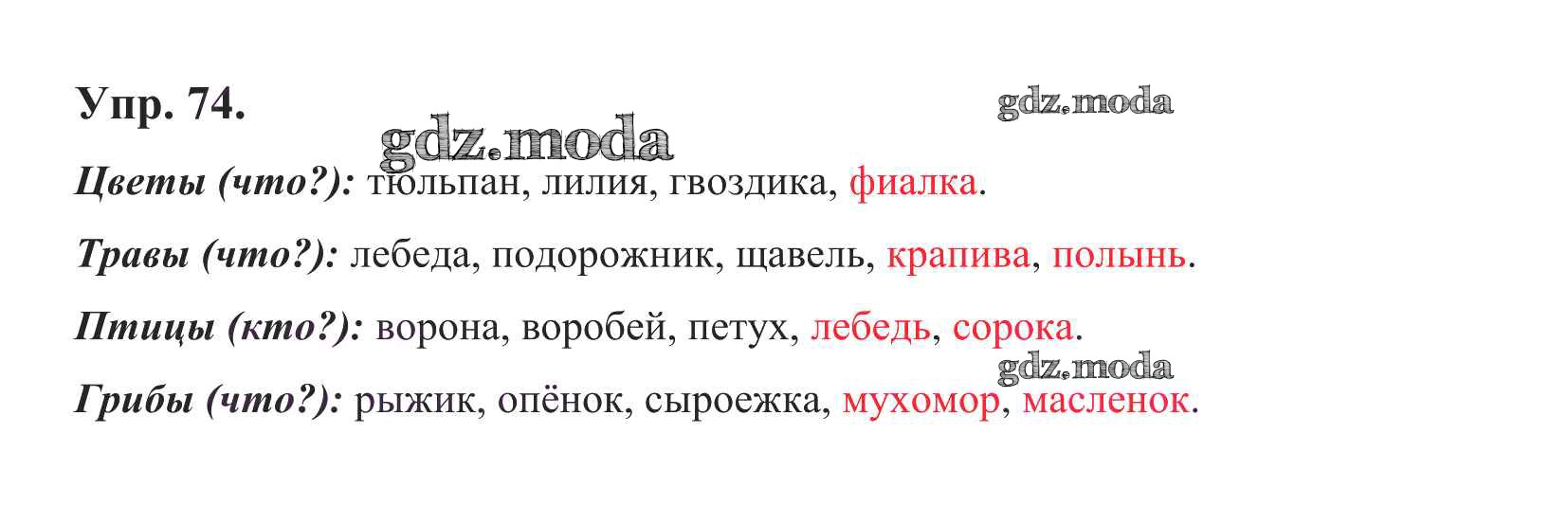 ОТВЕТ на задание № Упр. 74 Учебник по Русскому языку 1 класс Климанова Перспектива
