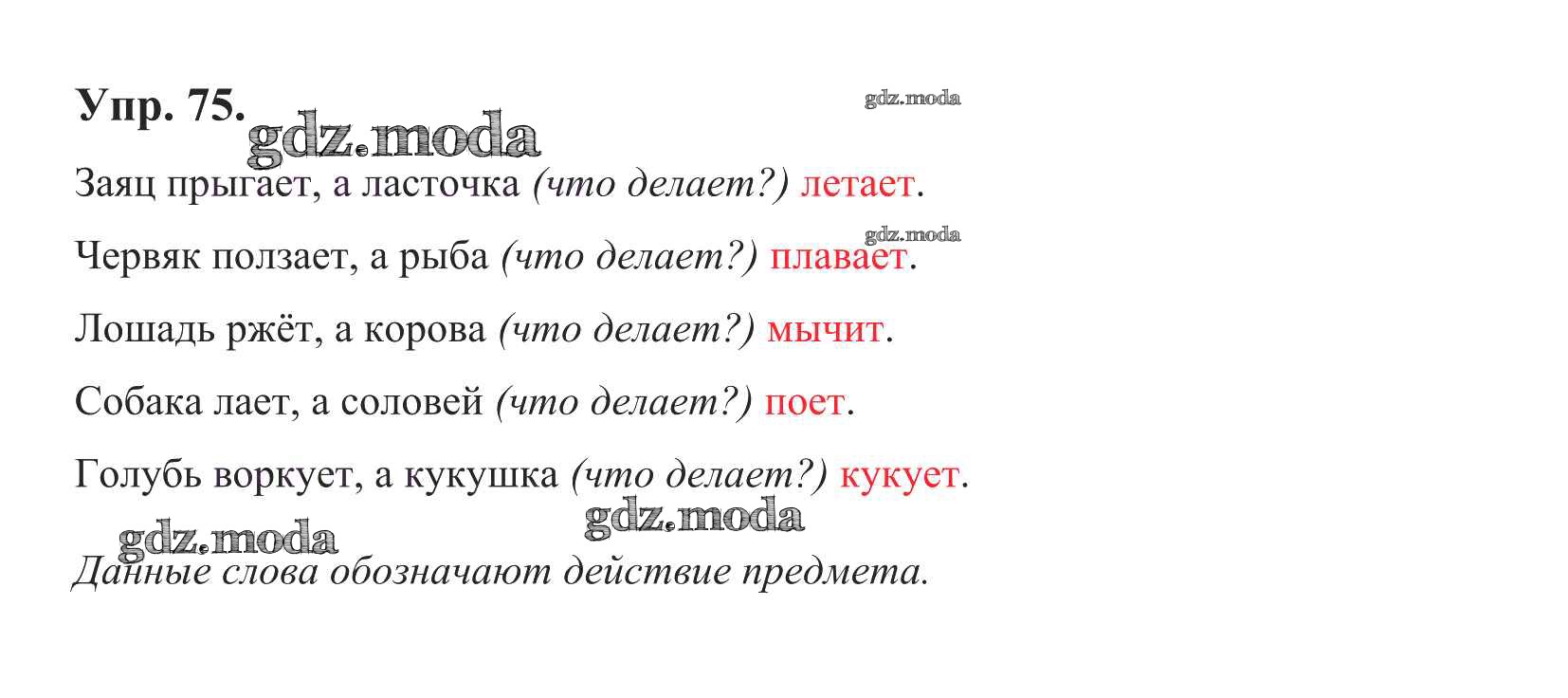 ОТВЕТ на задание № Упр. 75 Учебник по Русскому языку 1 класс Климанова Перспектива