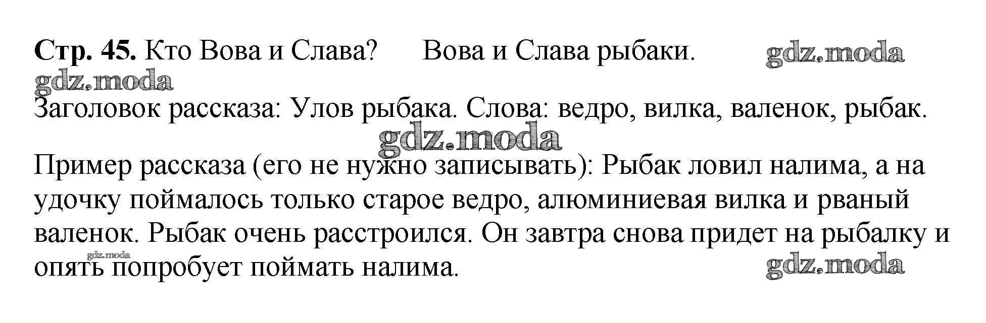 ОТВЕТ на задание № 45 Прописи по Русскому языку 1 класс Климанова Перспектива