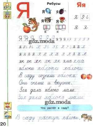 ГДЗ решение к заданию № 20 Русский язык 1 класс прописи Мой алфавит Климанова Л.Ф. Просвещение 2021 Часть 1, Часть 2 ФГОС бесплатно на гдз.мода!